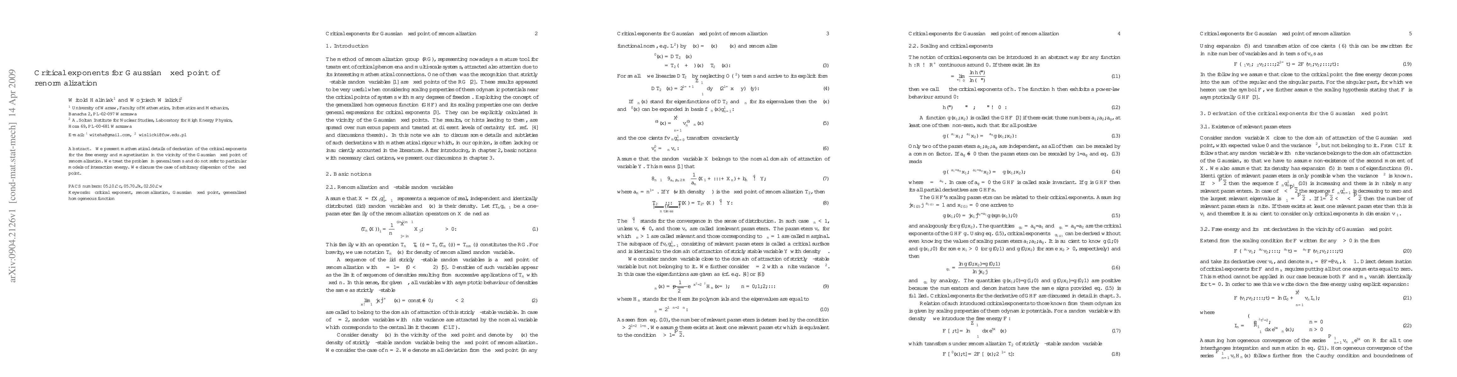 This paper derives critical exponents for the free energy and magnetization near the Gaussian fixed point of renormalization, providing mathematical details without referencing specific interaction models, and considering cases with arbitrary dispersion of the fixed point.