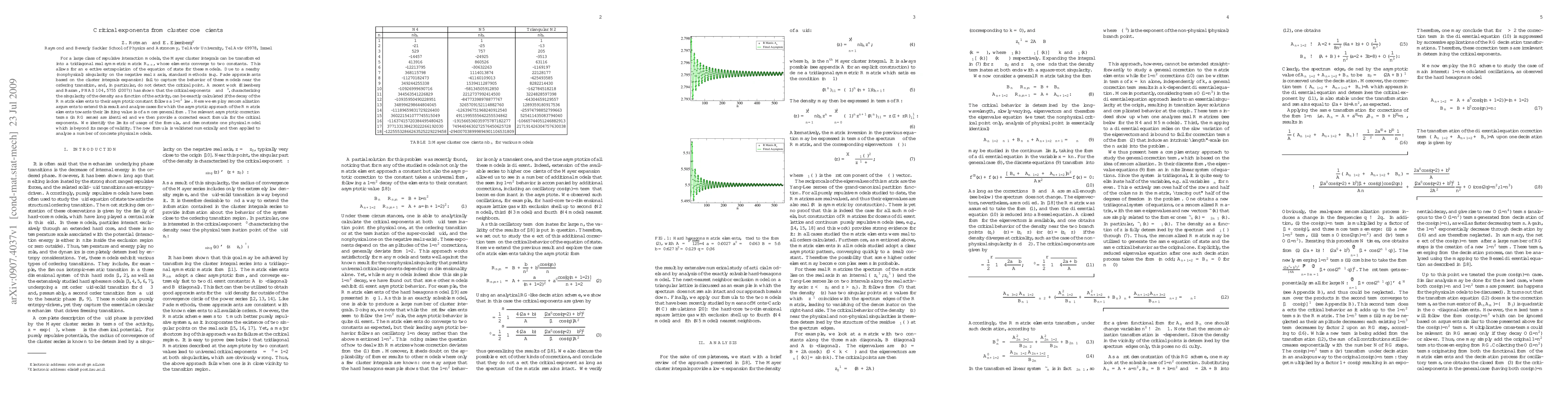 For a large class of repulsive interaction models, the Mayer cluster integrals can be transformed into a tridiagonal real symmetric matrix $R_{mn}$, whose elements converge to two constants. This allows for an effective extrapolation of the equation of state for these models. Due to a nearby (nonphysical) singularity on the negative real z axis, standard methods (e.g. Pad\`e approximants based on the cluster integrals expansion) fail to capture the behavior of these models near the ordering transition, and, in particular, do not detect the critical point. A recent work (Eisenberg and Baram, PNAS {\bf 104}, 5755 (2007)) has shown that the critical exponents $\sigma$ and $\sigma'$, characterizing the singularity of the density as a function of the activity, can be exactly calculated if the decay of the $R$ matrix elements to their asymptotic constant follows a $1/n^2$ law. Here we employ renormalization arguments to extend this result and analyze cases for which the asymptotic approach of the $R$ matrix elements towards their limiting value is of a more general form. The relevant asymptotic correction terms (in RG sense) are identified and we then provide a corrected exact formula for the critical exponents. We identify the limits of usage of the formula, and demonstrate one physical model which is beyond its range of validity. The new formula is validated numerically and then applied to analyze a number of concrete physical models.