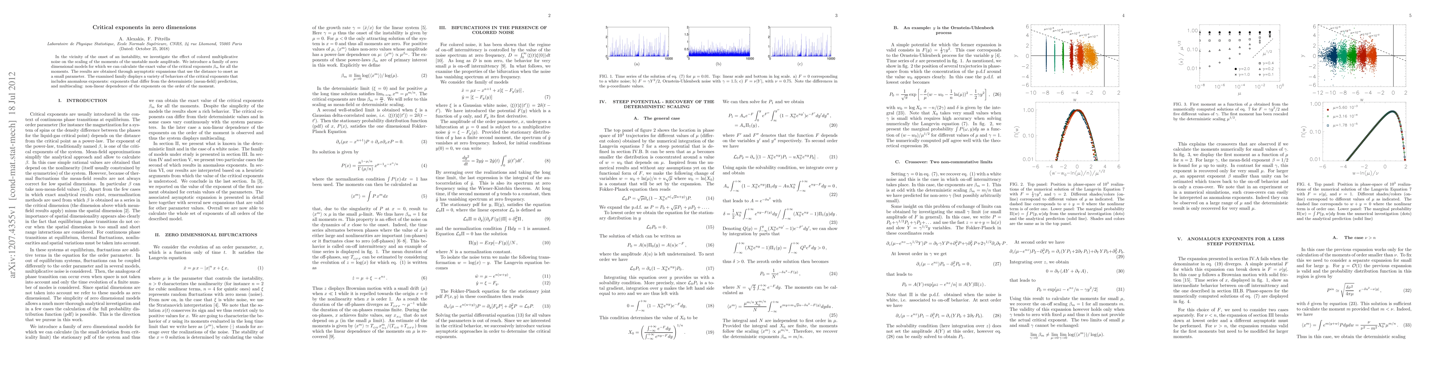 Researchers investigate how colored noise affects the stability of systems in zero dimensions, discovering a range of behaviors including anomalous exponents and multiscaling.