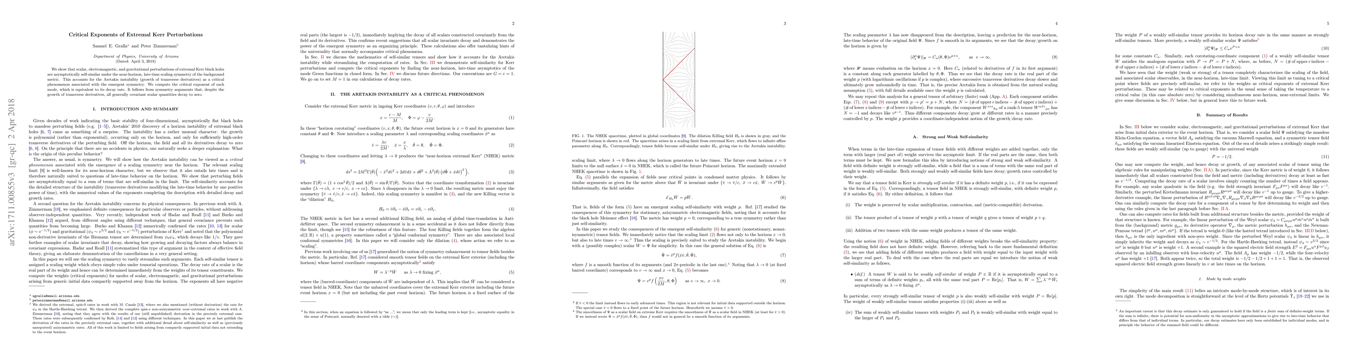 We show that scalar, electromagnetic, and gravitational perturbations of extremal Kerr black holes are asymptotically self-similar under the near-horizon, late-time scaling symmetry of the background metric. This accounts for the Aretakis instability (growth of transverse derivatives) as a critical phenomenon associated with the emergent symmetry. We compute the critical exponent of each mode, which is equivalent to its decay rate. It follows from symmetry arguments that, despite the growth of transverse derivatives, all generally covariant scalar quantities decay to zero.
