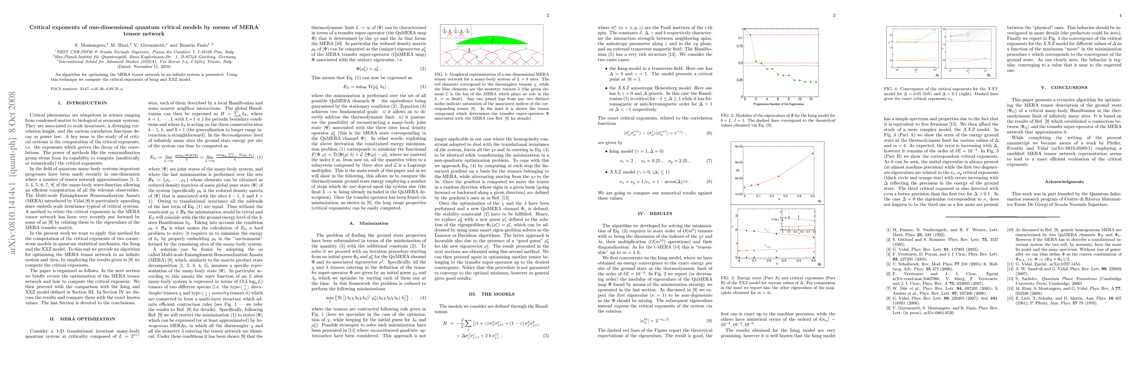 Researchers developed a method to optimize tensor networks for infinite systems, enabling accurate calculations of critical exponents in one-dimensional quantum models like the Ising and XXZ models.