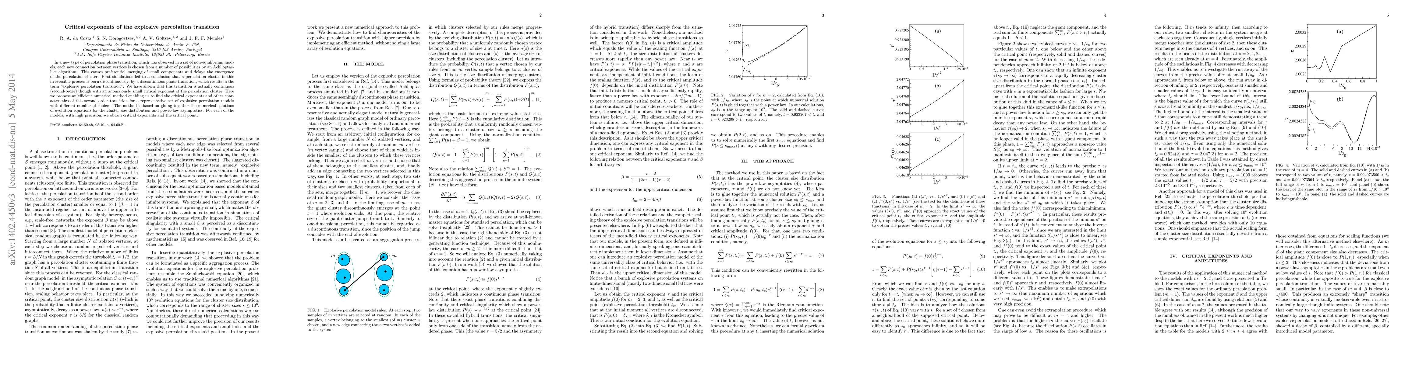 This paper investigates the critical exponents of the "explosive percolation transition" in non-equilibrium models, demonstrating that the transition is continuous (second-order) with an anomalously small critical exponent. The authors propose a numerical method to accurately determine these critical exponents and the critical point for various models.