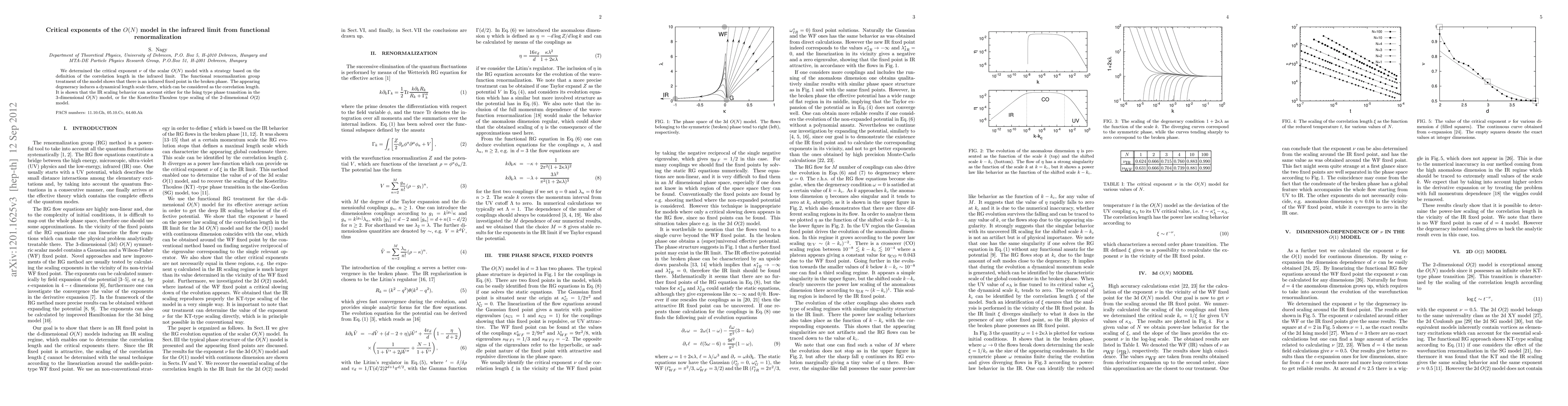 This paper determines the critical exponent $\nu$ for the O(N) model using functional renormalization group methods in the infrared limit, revealing an infrared fixed point and a dynamical length scale that can describe both Ising and Kosterlitz-Thouless phase transitions.