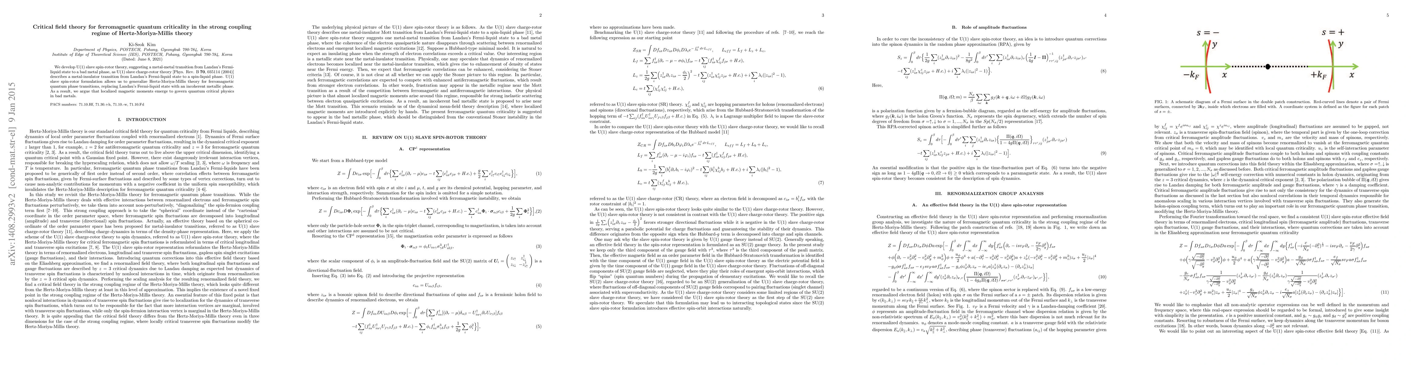 We develop U(1) slave spin-rotor theory, suggesting a metal-metal transition from Landau's Fermi-liquid state to a bad metal phase, as U(1) slave charge-rotor theory [Phys. Rev. B {\bf 70}, 035114 (2004)] describes a metal-insulator transition from Landau's Fermi-liquid state to a spin-liquid phase. U(1) slave spin-rotor formulation allows us to generalize Hertz-Moriya-Millis theory for ferromagnetic quantum phase transitions, replacing Landau's Fermi-liquid state with an incoherent metallic phase. As a result, we argue that localized magnetic moments emerge to govern quantum critical physics in bad metals.