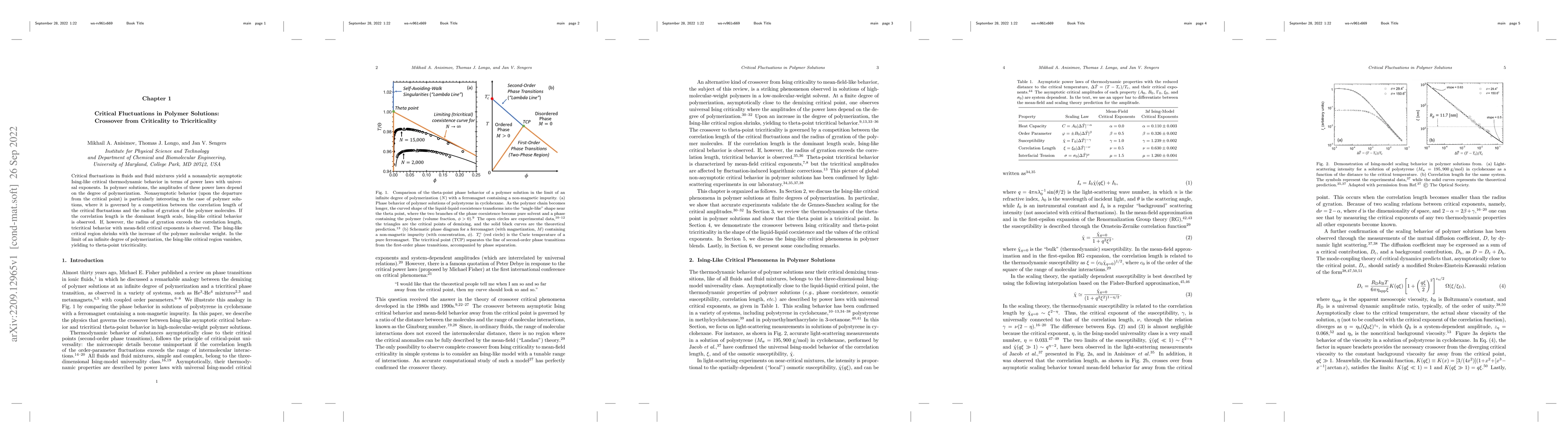 Critical fluctuations in fluids and fluid mixtures yield a nonanalytic asymptotic Ising-like critical thermodynamic behavior in terms of power laws with universal exponents. In polymer solutions, the amplitudes of these power laws depend on the degree of polymerization. Nonasymptotic behavior (upon the departure from the critical point) is particularly interesting in the case of polymer solutions, where it is governed by a competition between the correlation length of the critical fluctuations and the radius of gyration of the polymer molecules. If the correlation length is the dominant length scale, Ising-like critical behavior is observed. If, however, the radius of gyration exceeds the correlation length, tricritical behavior with mean-field critical exponents is observed. The Ising-like critical region shrinks with the increase of the polymer molecular weight. In the limit of an infinite degree of polymerization, the Ising-like critical region vanishes, yielding to theta-point tricriticality.