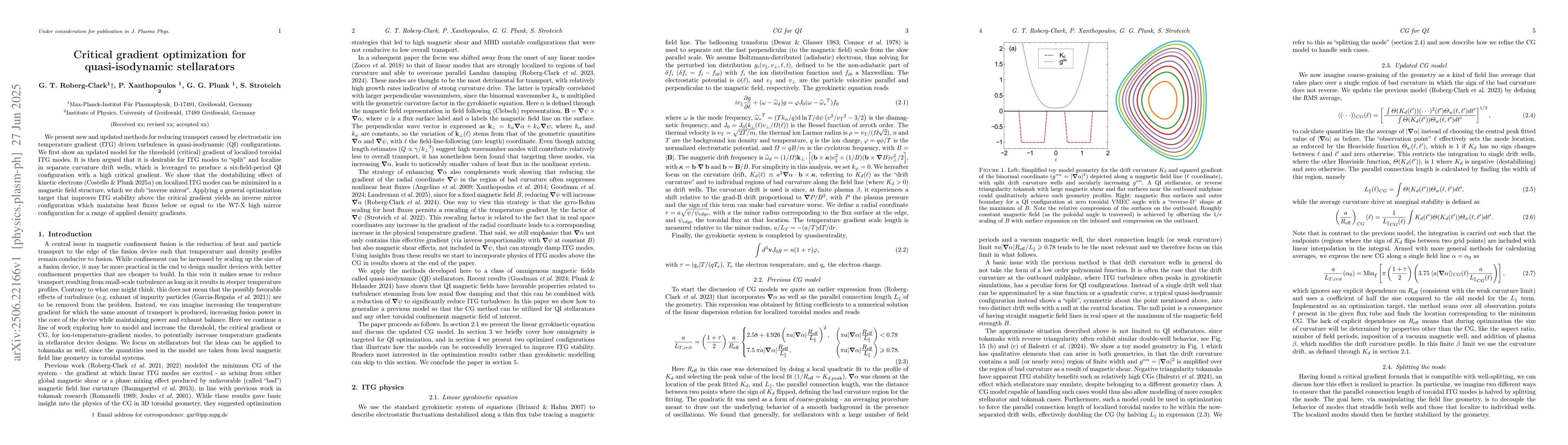 We present new and updated methods for reducing transport caused by electrostatic ion temperature gradient (ITG) driven turbulence in quasi-isodynamic (QI) configurations. We first show an updated model for the threshold (critical) gradient of localized toroidal ITG modes. It is then argued that it is desirable for ITG modes to "split" and localize in separate curvature drift wells, which is leveraged to produce a six-field-period QI configuration with a high critical gradient. We show that the destabilizing effect of kinetic electrons (Costello & Plunk 2025a) on localized ITG modes can be minimized in a magnetic field structure, which we dub "inverse mirror". Applying a general optimization target that improves ITG stability above the critical gradient yields an inverse mirror configuration, which produces heat fluxes below or equal to the W7-X high mirror configuration for a range of applied density gradients.