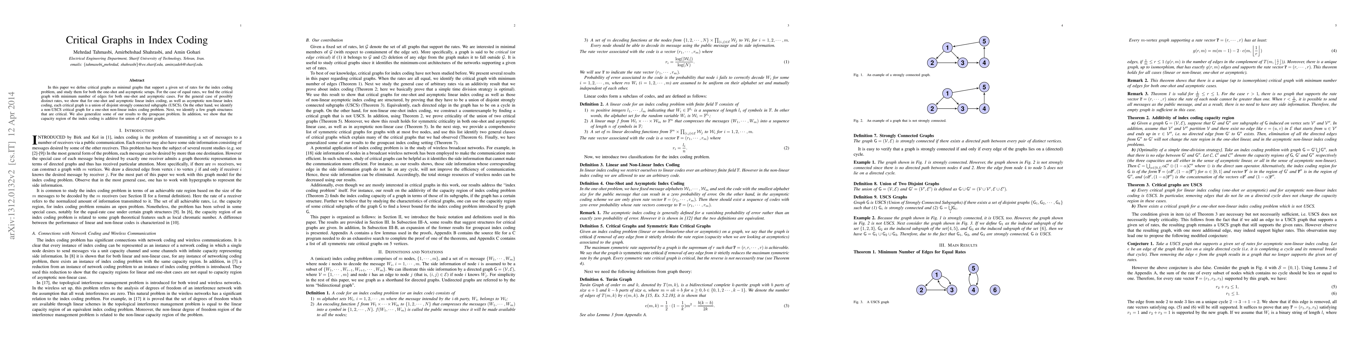 This paper defines critical graphs as minimal structures supporting specific rates in the index coding problem, analyzing them in both one-shot and asymptotic scenarios. It identifies the minimum edge critical graph for equal rates and shows that for linear and non-linear index coding, critical graphs are unions of strongly connected subgraphs, except for one-shot non-linear cases.