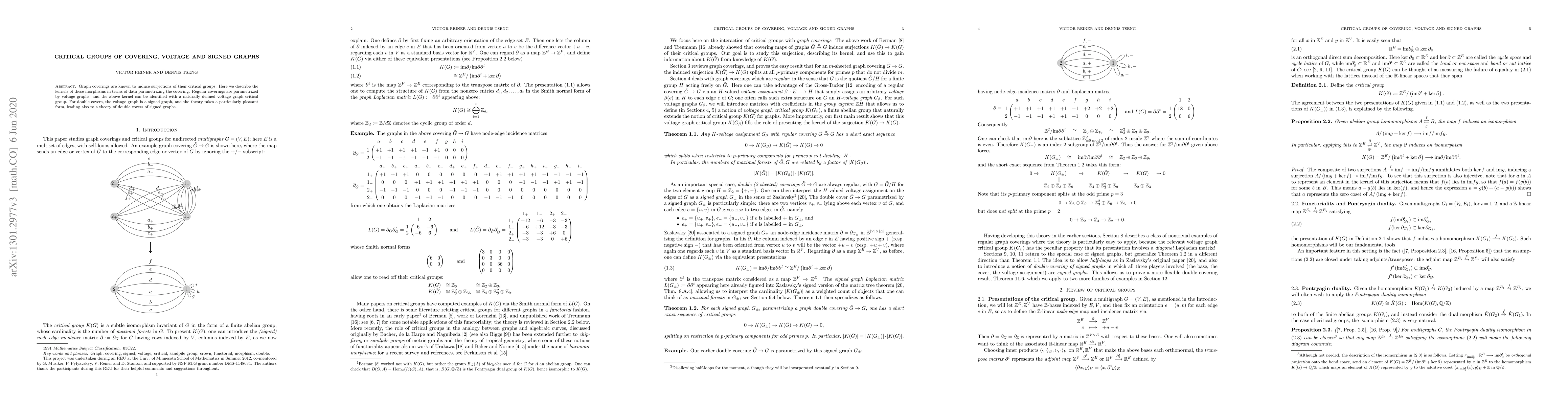 Graph coverings are known to induce surjections of their critical groups. Here we describe the kernels of these morphisms in terms of data parametrizing the covering. Regular coverings are parametrized by voltage graphs, and the above kernel can be identified with a naturally defined voltage graph critical group. For double covers, the voltage graph is a signed graph, and the theory takes a particularly pleasant form, leading also to a theory of double covers of signed graphs.