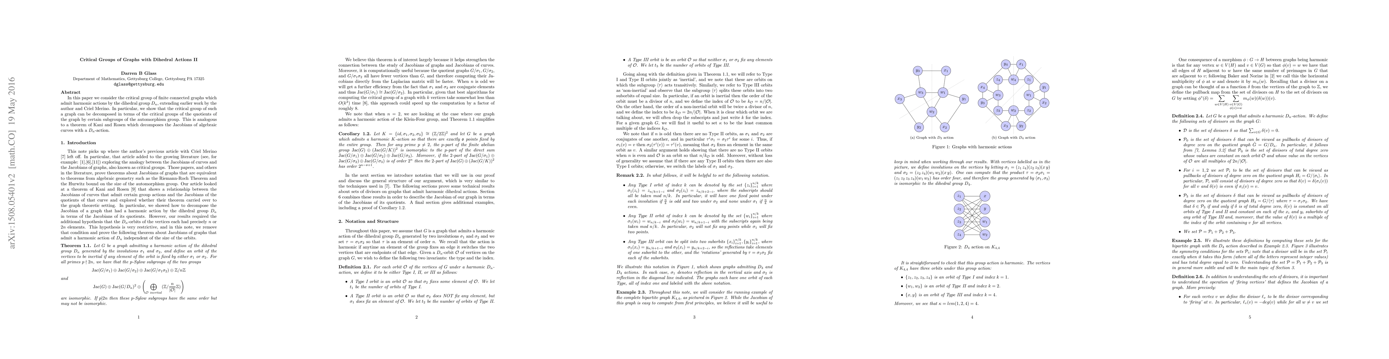 In this paper we consider the critical group of finite connected graphs which admit harmonic actions by the dihedral group $D_n$, extending earlier work by the author and Criel Merino. In particular, we show that the critical group of such a graph can be decomposed in terms of the critical groups of the quotients of the graph by certain subgroups of the automorphism group. This is analogous to a theorem of Kani and Rosen which decomposes the Jacobians of algebraic curves with a $D_n$-action.