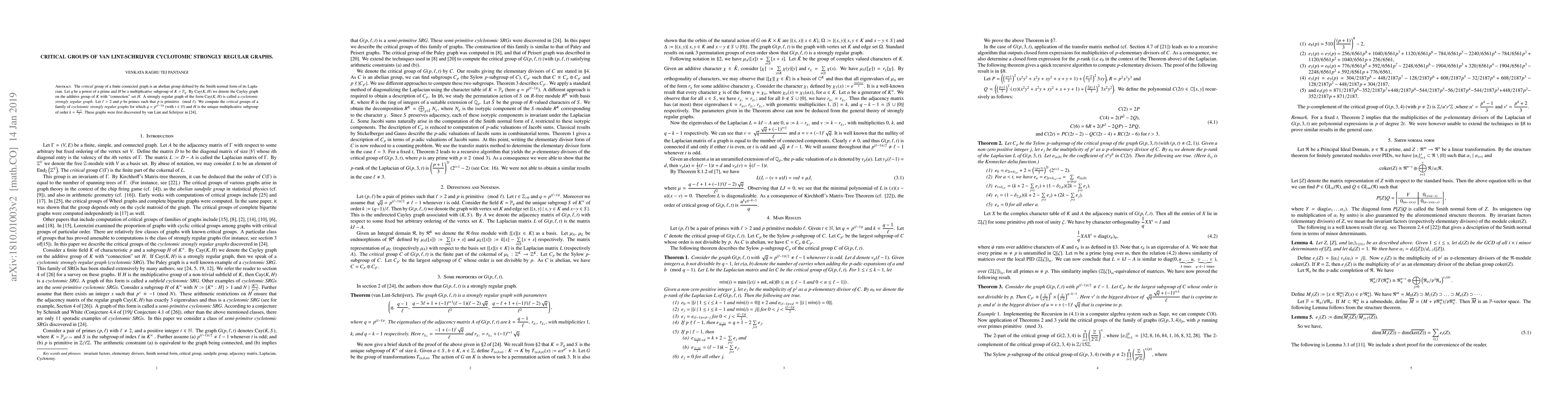 This paper computes the critical groups of a specific family of cyclotomic strongly regular graphs defined by a multiplicative subgroup in a finite field, revealing their underlying abelian group structure via the Smith normal form of their Laplacian. The focus is on graphs derived from primitive primes modulo a larger prime.