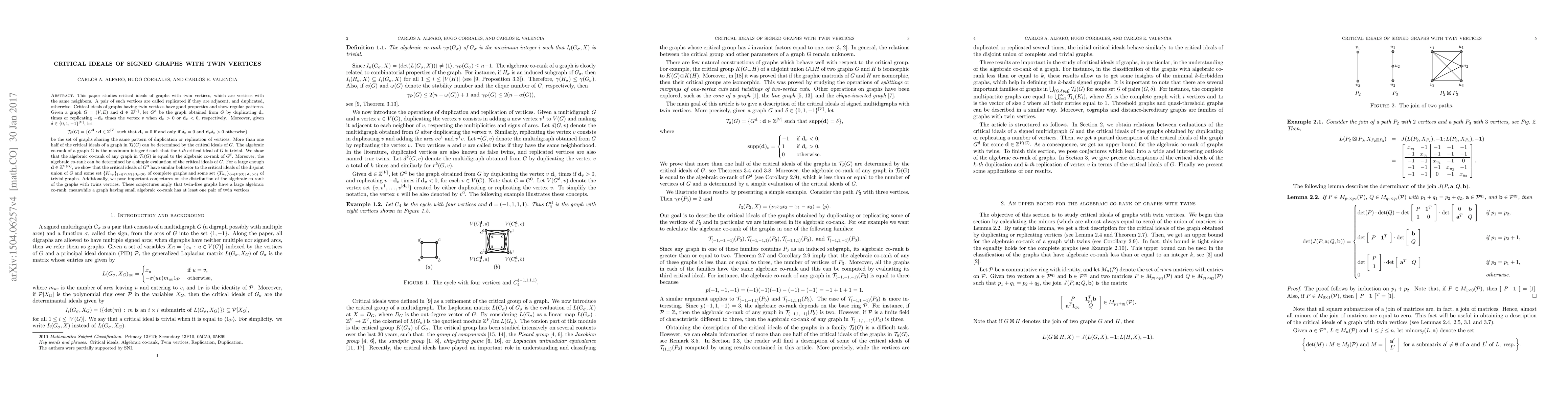 This paper investigates critical ideals in signed graphs containing twin vertices, which share identical neighbor sets, and explores their properties and patterns. It demonstrates that the algebraic co-rank of graphs with a specified duplication or replication pattern is consistent with that of the original graph, and conjectures about the distribution of algebraic co-rank in graphs with twin vertices.