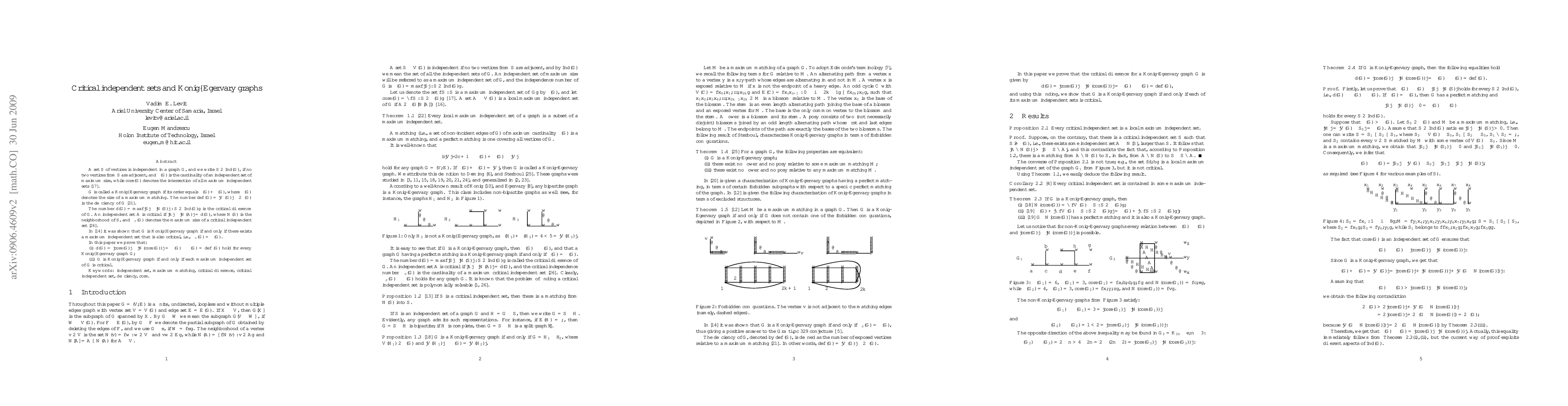 Let alpha(G) be the cardinality of a independence set of maximum size in the graph G, while mu(G) is the size of a maximum matching. G is a Konig--Egervary graph if its order equals alpha(G) + mu(G). The set core(G) is the intersection of all maximum independent sets of G (Levit & Mandrescu, 2002). The number def(G)=|V(G)|-2*mu(G) is the deficiency of G (Lovasz & Plummer, 1986). The number d(G)=max{|S|-|N(S)|:S in Ind(G)} is the critical difference of G. An independent set A is critical if |A|-|N(A)|=d(G), where N(S) is the neighborhood of S (Zhang, 1990). In 2009, Larson showed that G is Konig--Egervary graph if and only if there exists a maximum independent set that is critical as well. In this paper we prove that: (i) d(G)=|core(G)|-|N(core(G))|=alpha(G)-mu(G)=def(G) for every Konig--Egervary graph G; (ii) G is Konig--Egervary graph if and only if every maximum independent set of G is critical.