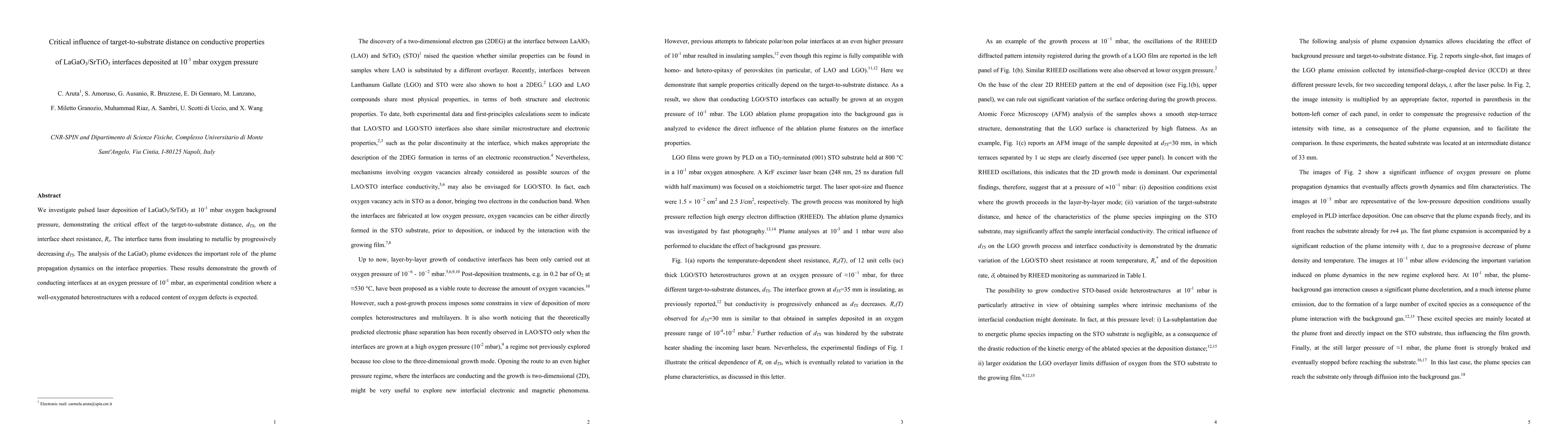 We investigate pulsed laser deposition of LaGaO3/SrTiO3 at 10-1 mbar oxygen background pressure, demonstrating the critical effect of the target-to-substrate distance, dTS, on the interface sheet resistance, Rs. The interface turns from insulating to metallic by progressively decreasing dTS. The analysis of the LaGaO3 plume evidences the important role of the plume propagation dynamics on the interface properties. These results demonstrate the growth of conducting interfaces at an oxygen pressure of 10-1 mbar, an experimental condition where a well-oxygenated heterostructures with a reduced content of oxygen defects is expected.
