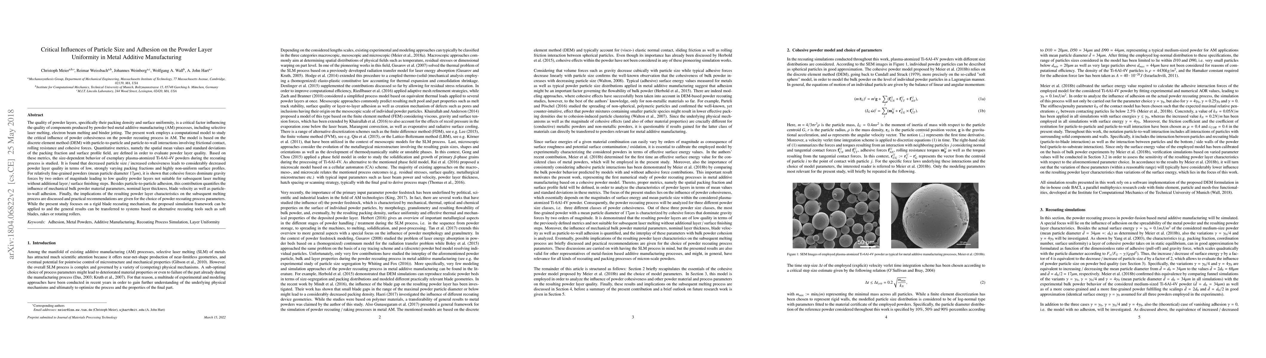 A computational model using discrete element method reveals that smaller particle size and higher cohesiveness lead to lower powder layer quality in metal additive manufacturing, affecting subsequent laser melting processes.