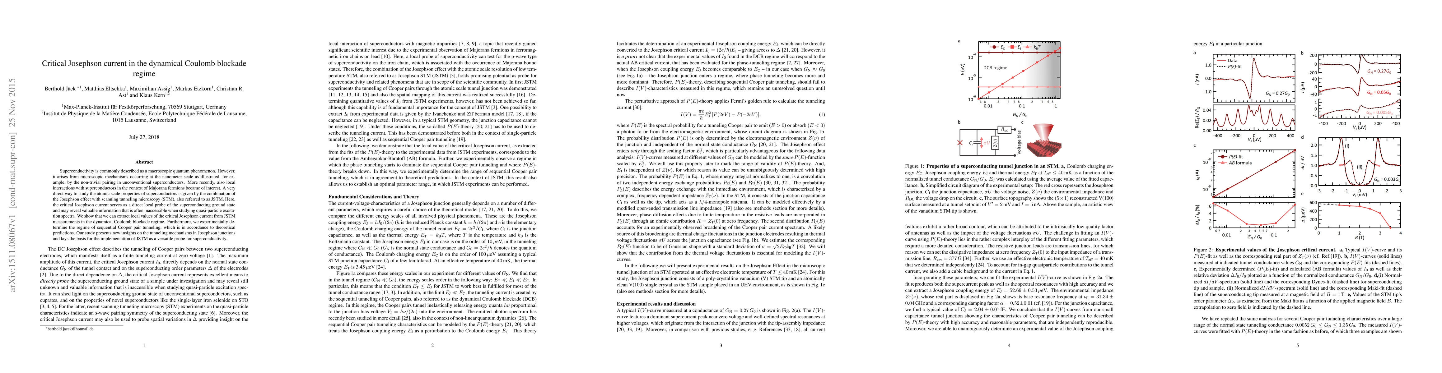 This paper investigates the critical Josephson current in the dynamical Coulomb blockade regime using scanning tunneling microscopy combined with Josephson effect measurements (JSTM). The study reveals local values of the critical Josephson current and confirms theoretical predictions for sequential Cooper pair tunneling, providing new insights into tunneling mechanisms and establishing JSTM as a powerful probe for superconductivity.