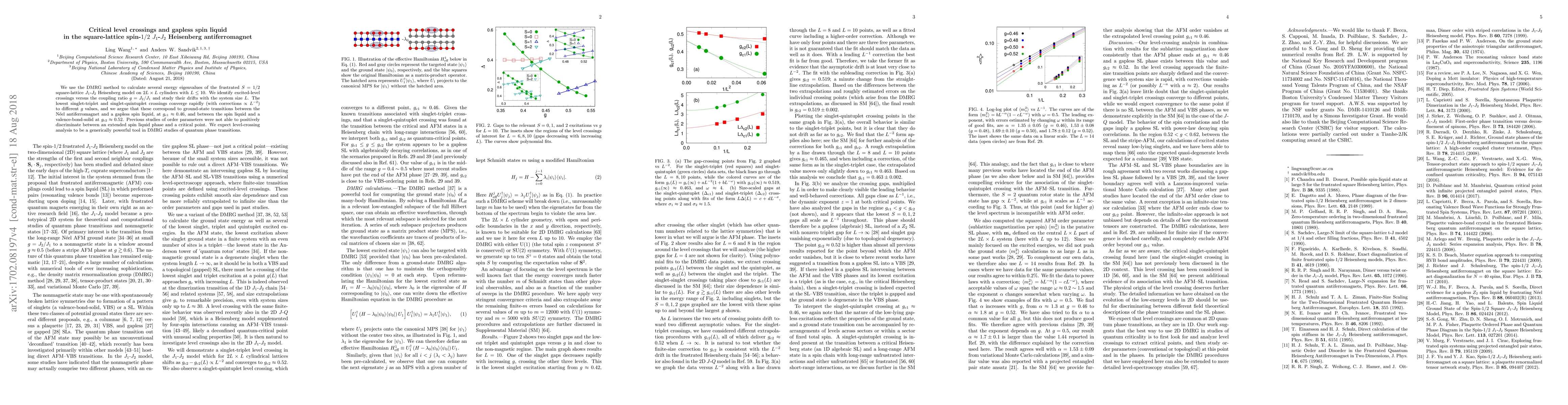 This study uses the Density Matrix Renormalization Group (DMRG) method to identify critical level crossings in the $J_1$-$J_2$ Heisenberg model, revealing transitions between the N\'eel antiferromagnet and a gapless spin liquid at $g_{c1} \approx 0.46$, and between the spin liquid and a valence-bond-solid at $g_{c2} \approx 0.52$. Level-crossing analysis provides a powerful tool for detecting quantum phase transitions.