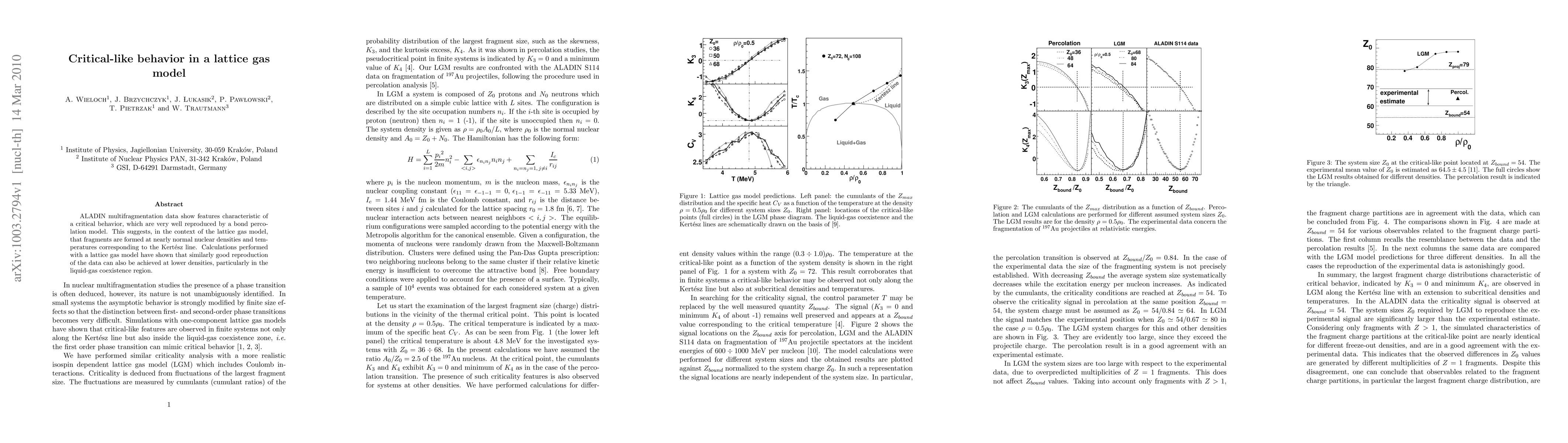 The research finds that ALADIN multifragmentation data exhibit critical behavior, well-modeled by a bond percolation model, suggesting fragments form at near-normal nuclear densities along the Kertz line. Lattice gas model calculations confirm this, also reproducing data at lower densities, especially in the liquid-gas coexistence region.