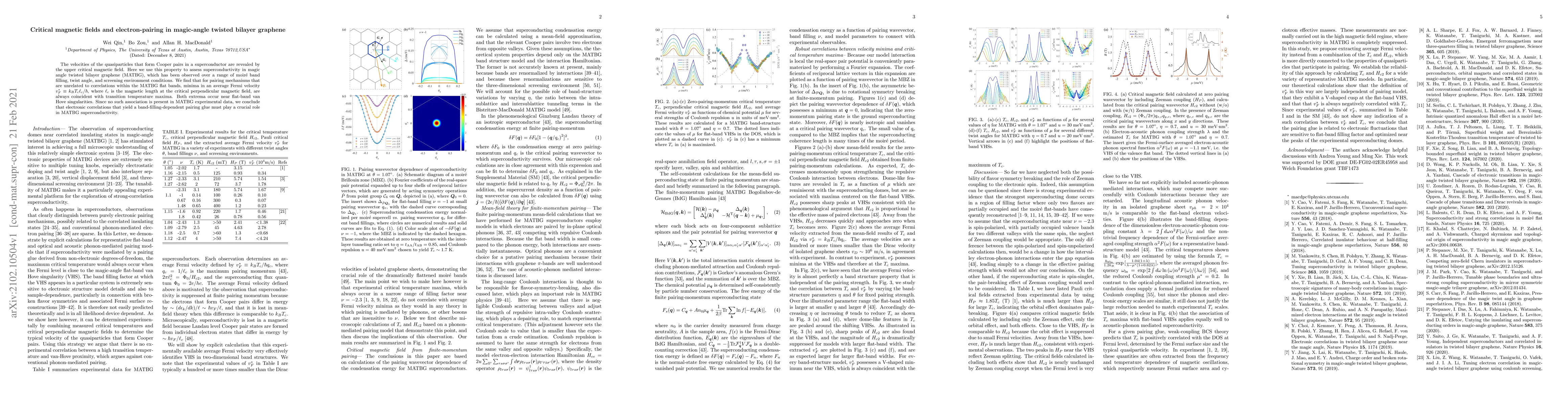 The velocities of the quasiparticles that form Cooper pairs in a superconductor are revealed by the upper critical magnetic field. Here we use this property to assess superconductivity in magic-angle twisted bilayer graphene (MATBG), which has been observed over a range of moir\'e band filling, twist angle, and screening environment conditions. We find that for pairing mechanisms that are unrelated to correlations within the MATBG flat bands, minima in an average Fermi velocity $v_F^* \equiv k_B T_c \ell_c /\hbar $, where $\ell_c$ is the magnetic length at the critical perpendicular magnetic field, are always coincident with transition temperature maxima. Both extrema occur near flat-band van Hove singularities. Since no such association is present in MATBG experimental data, we conclude that electronic correlations that yield a band-filling-dependent pairing glue must play a crucial role in MATBG superconductivity.