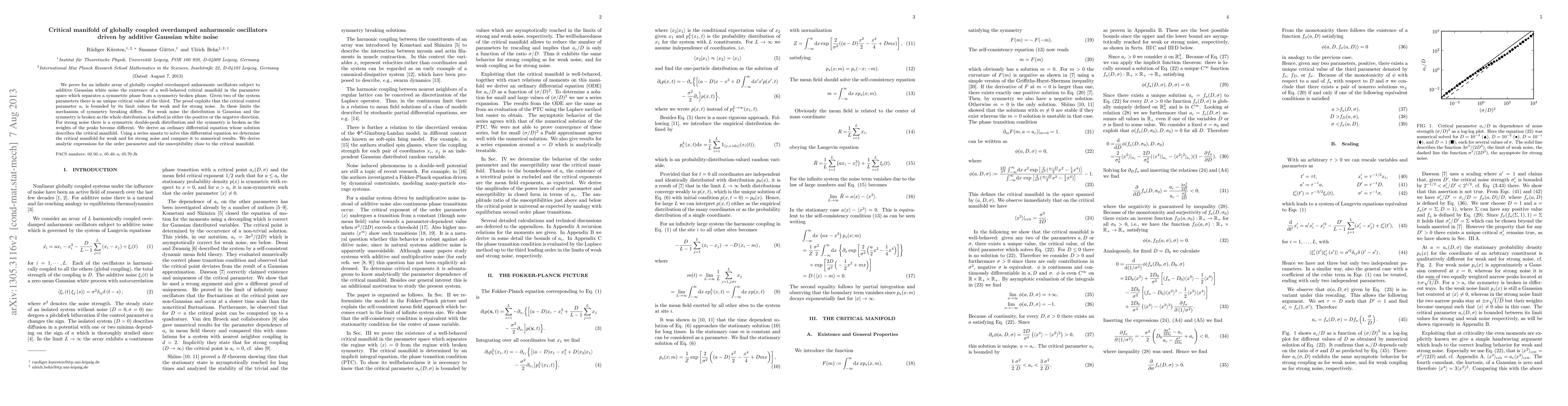 This paper proves the existence of a critical manifold in the parameter space of globally coupled overdamped anharmonic oscillators driven by additive Gaussian white noise, which separates symmetric and symmetry-broken phases. The study derives an ordinary differential equation describing this critical manifold and compares its solutions to numerical results.