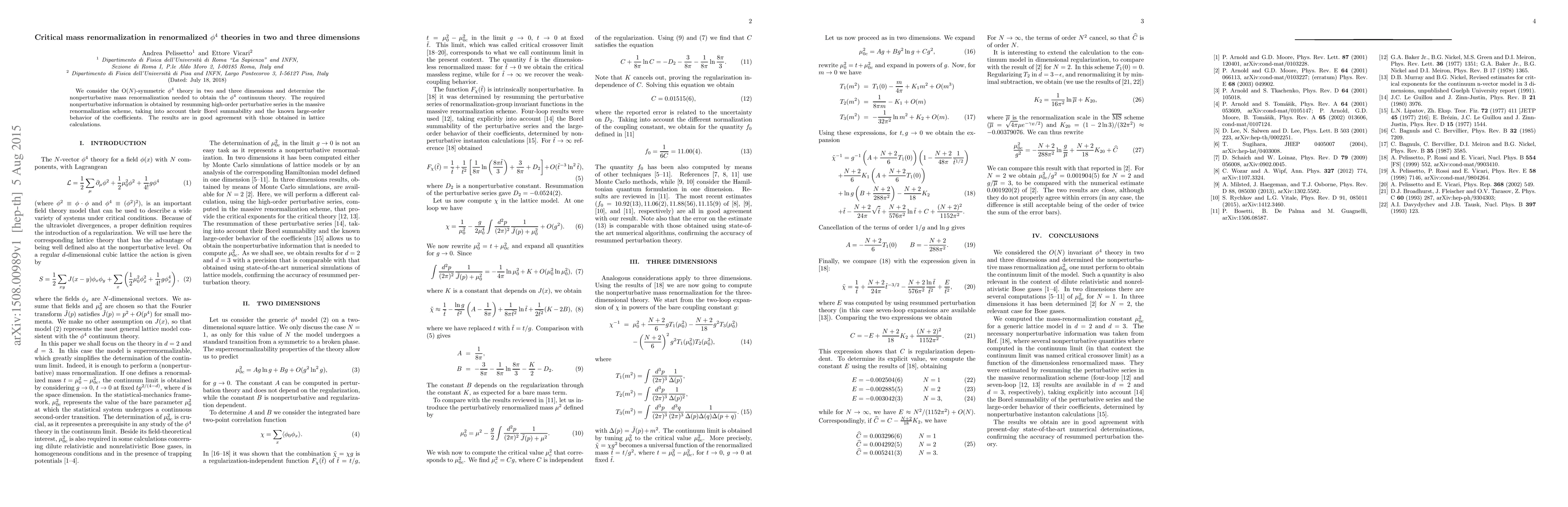 This research determines the necessary mass renormalization in O(N)-symmetric phi4 theories in 2D and 3D, achieving continuum phi4 theory without perturbative limitations. Results align with lattice calculations, validating the method of resumming high-order perturbative series considering Borel summability and large-order coefficient behavior.