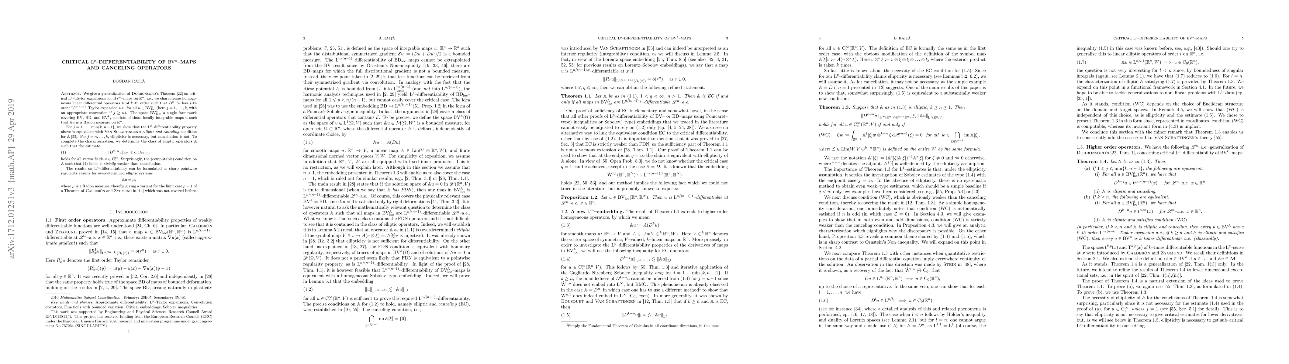 This paper generalizes Dorronsoro's Theorem on critical $\mathrm{L}^p$-Taylor expansions for $\mathrm{BV}^k$-maps, characterizing $k$-th order differential operators that allow for $j$-th order $\mathrm{L}^{n/(n-j)}$-Taylor expansions almost everywhere. A new $\mathrm{L}^\infty$-Sobolev inequality is introduced to support these expansions.