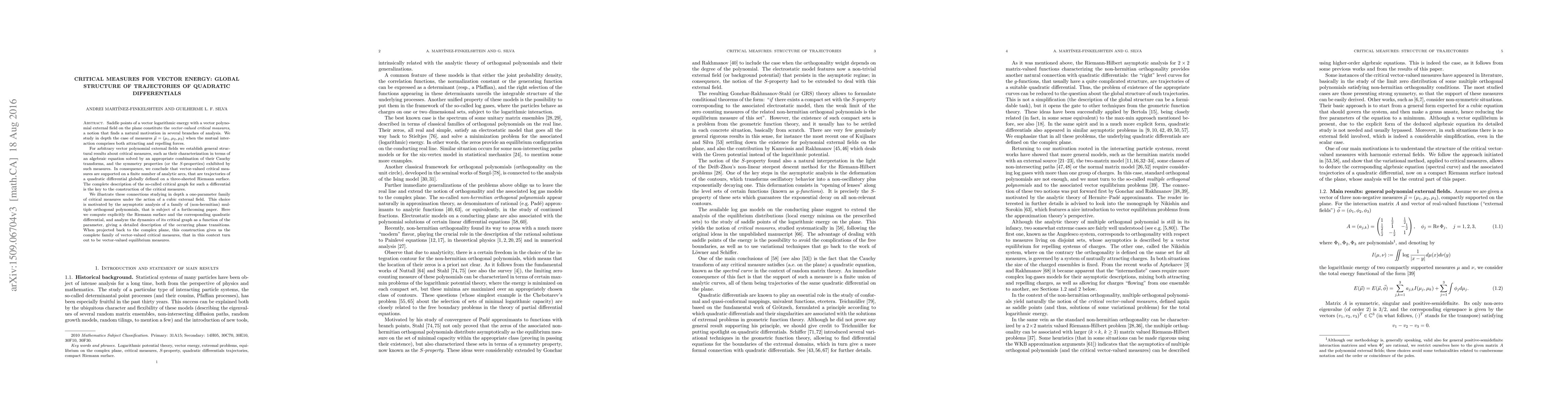 This paper explores vector critical measures in the context of quadratic differentials on a three-sheeted Riemann surface, revealing their connection to algebraic equations and symmetry properties.