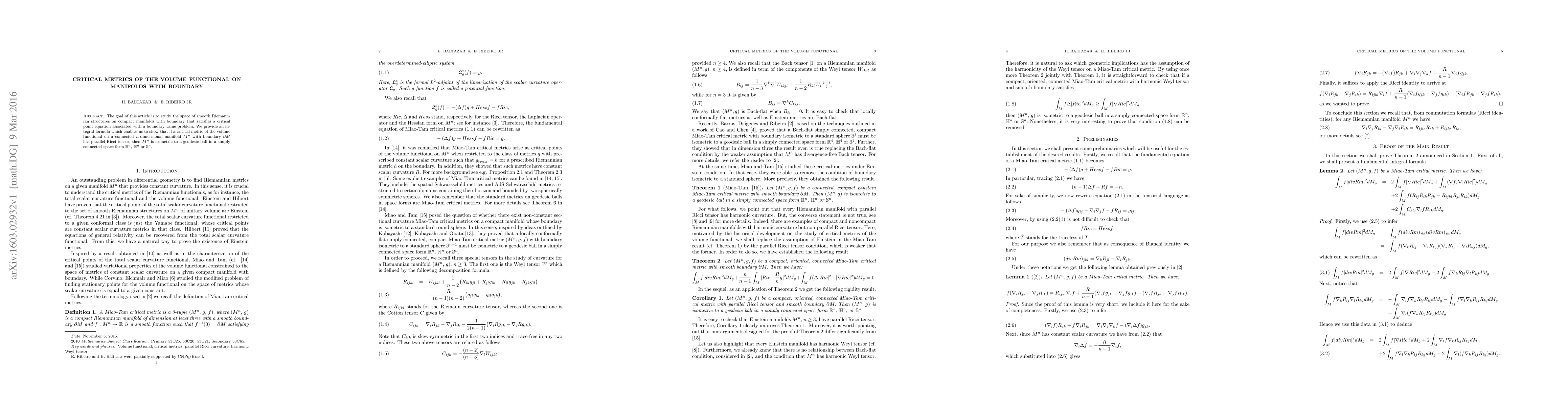 This paper investigates critical metrics of the volume functional on compact manifolds with boundary, proving that if such a metric has a parallel Ricci tensor, then the manifold is isometric to a geodesic ball in a simply connected space form. An integral formula is provided to support this result.