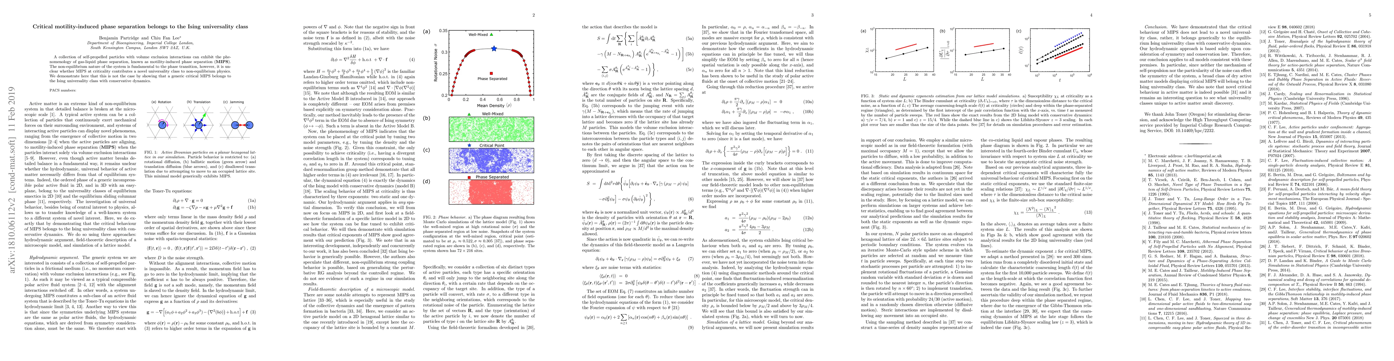 The research reveals that critical motility-induced phase separation (MIPS) among self-propelled particles with volume exclusion interactions does not introduce a new universality class but instead aligns with the Ising model, signifying conservative dynamics in the non-equilibrium phase transition.