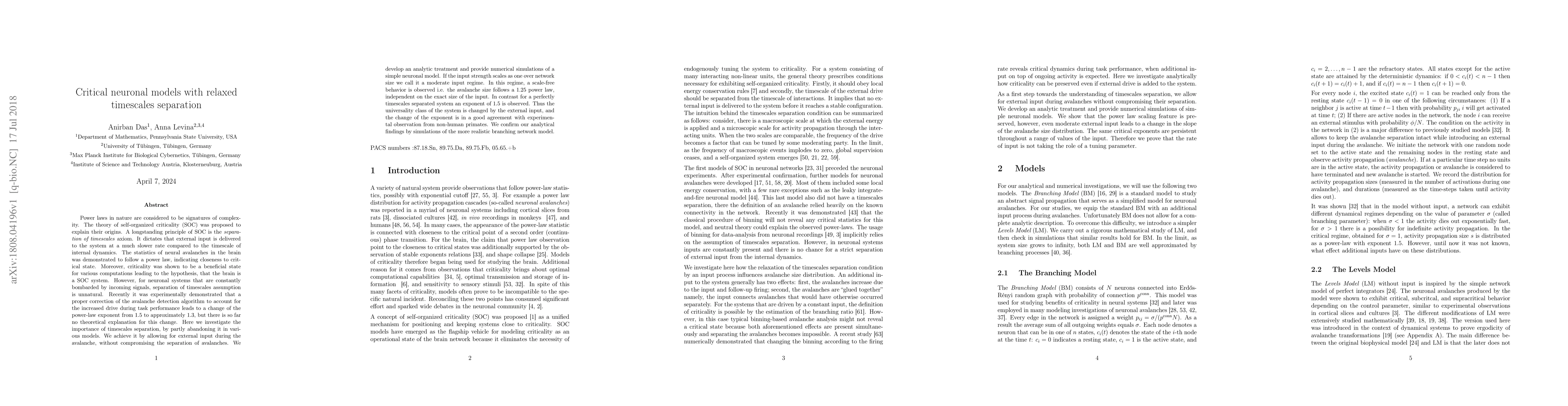 Power laws in nature are considered to be signatures of complexity. The theory of self-organized criticality (SOC) was proposed to explain their origins. A longstanding principle of SOC is the \emph{separation of timescales} axiom. It dictates that external input is delivered to the system at a much slower rate compared to the timescale of internal dynamics. The statistics of neural avalanches in the brain was demonstrated to follow a power law, indicating closeness to a critical state. Moreover, criticality was shown to be a beneficial state for various computations leading to the hypothesis, that the brain is a SOC system. However, for neuronal systems that are constantly bombarded by incoming signals, separation of timescales assumption is unnatural. Recently it was experimentally demonstrated that a proper correction of the avalanche detection algorithm to account for the increased drive during task performance leads to a change of the power-law exponent from $1.5$ to approximately $1.3$, but there is so far no theoretical explanation for this change. Here we investigate the importance of timescales separation, by partly abandoning it in various models. We achieve it by allowing for external input during the avalanche, without compromising the separation of avalanches. We develop an analytic treatment and provide numerical simulations of a simple neuronal model.