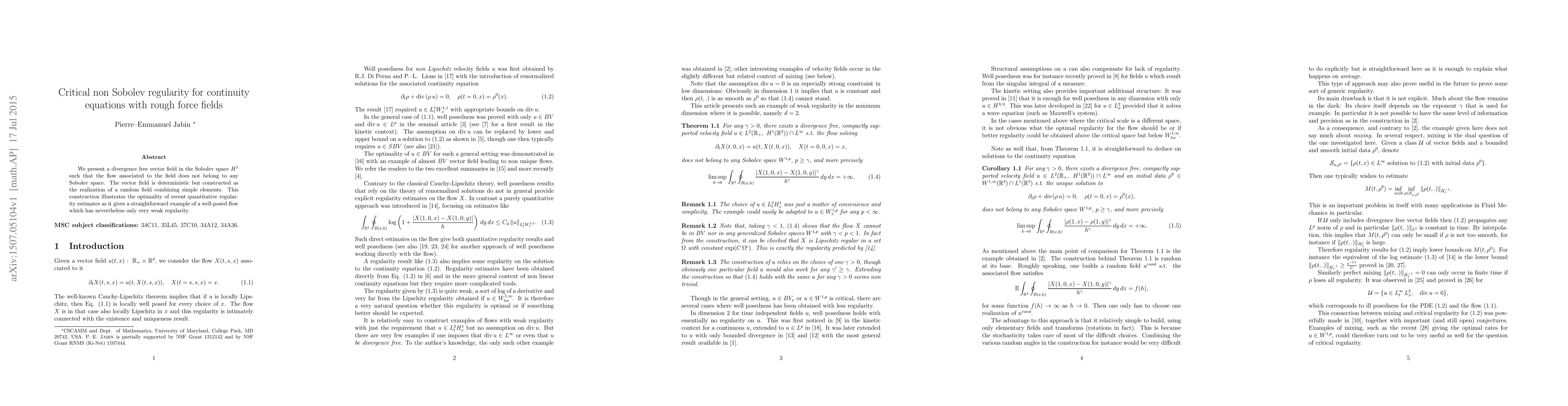 A new vector field is created that demonstrates the existence of continuous equations with very weak regularity, challenging recent quantitative estimates. The field's flow does not belong to any Sobolev space despite being deterministic.