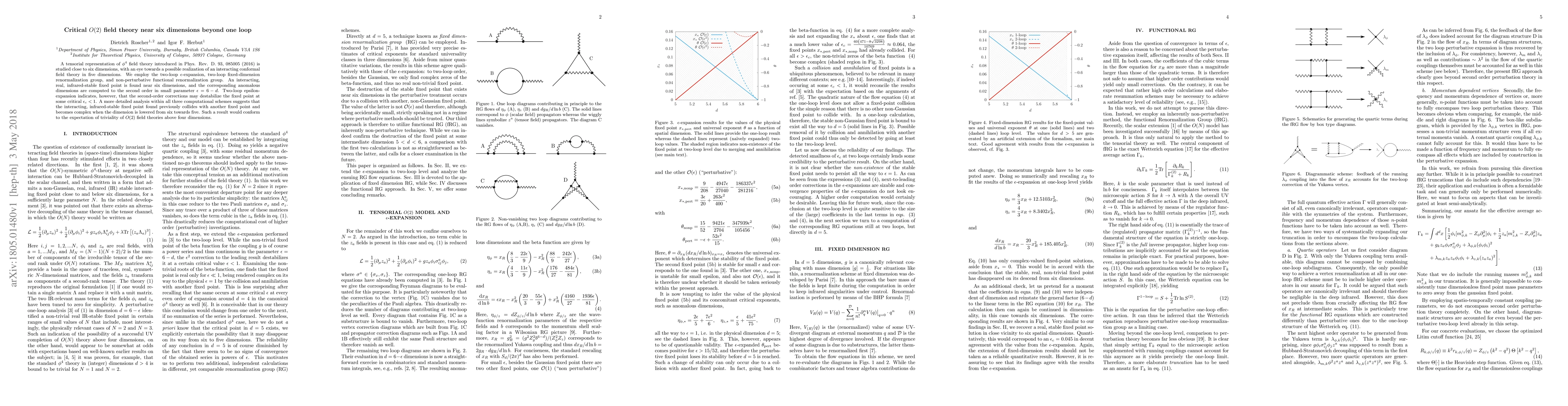 A tensorial representation of $\phi^4$ field theory introduced in Phys. Rev. D. 93, 085005 (2016) is studied close to six dimensions, with an eye towards a possible realization of an interacting conformal field theory in five dimensions. We employ the two-loop $\epsilon$-expansion, two-loop fixed-dimension renormalization group, and non-perturbative functional renormalization group. An interacting, real, infrared-stable fixed point is found near six dimensions, and the corresponding anomalous dimensions are computed to the second order in small parameter $\epsilon=6-d$. Two-loop epsilon-expansion indicates, however, that the second-order corrections may destabilize the fixed point at some critical $\epsilon_c <1$. A more detailed analysis within all three computational schemes suggests that the interacting, infrared-stable fixed point found previously collides with another fixed point and becomes complex when the dimension is lowered from six towards five. Such a result would conform to the expectation of triviality of $O(2)$ field theories above four dimensions.