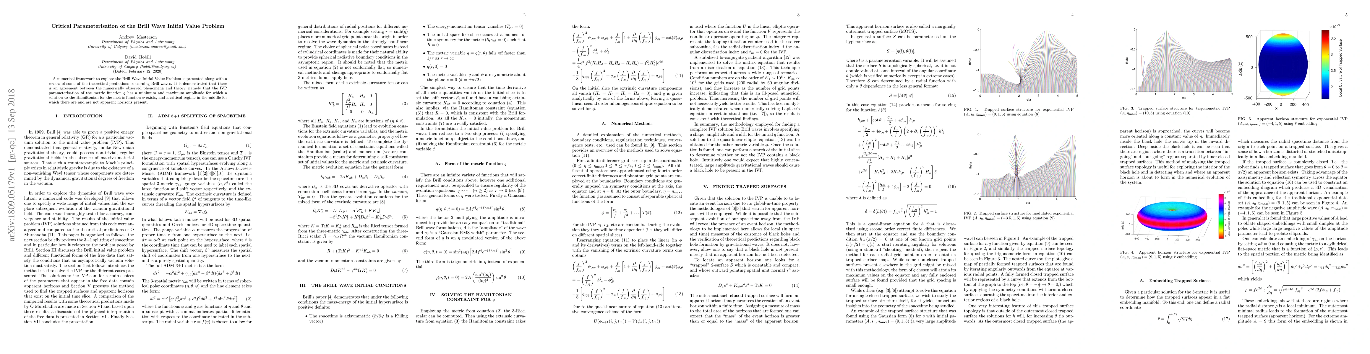 A numerical framework to explore the Brill Wave Initial Value Problem is presented along with a review of some of the theoretical predictions concerning Brill waves. It is demonstrated that there is an agreement between the numerically observed phenomena and theory, namely that the IVP parameterisation of the metric function $q$ has a minimum and maximum amplitude for which a solution to the Hamiltonian for the metric function $\phi$ exists, and a critical regime in the middle for which there are and are not apparent horizons present.
