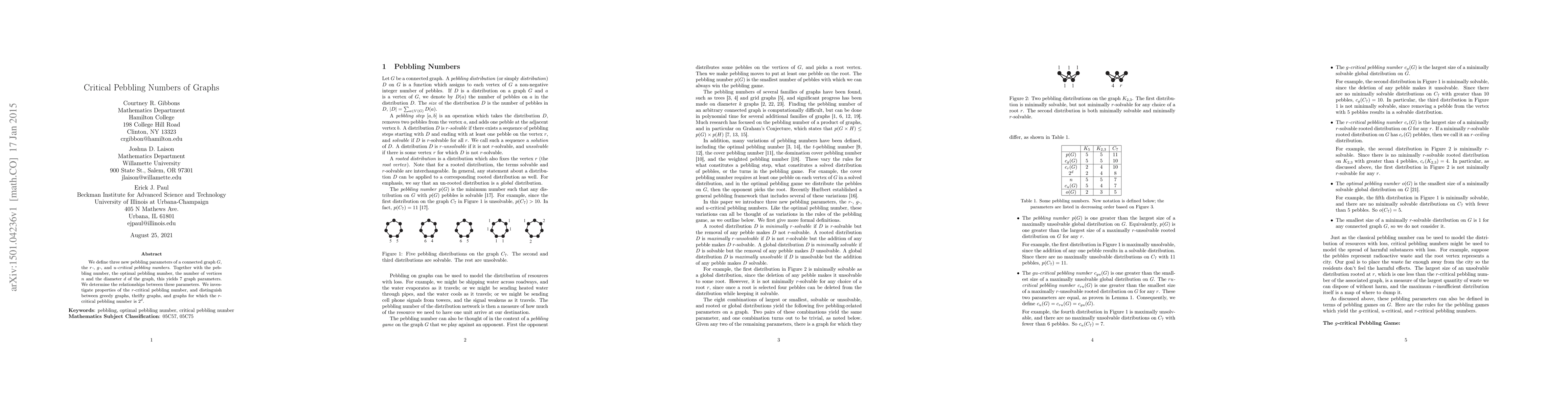 The research defines new pebbling parameters for connected graphs: r-critical, g-critical, and u-critical pebbling numbers, alongside the pebbling number and optimal pebbling number. It explores relationships between these parameters and properties of the r-critical pebbling number.
