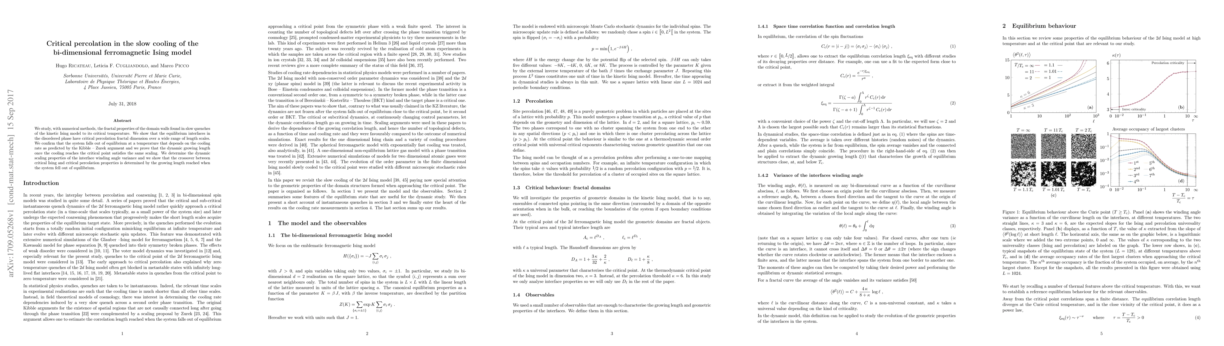 The study shows that a specific temperature range in the Ising model exhibits critical percolation fractal dimension across different length scales. The cooling rate affects the system's temperature at which it falls out of equilibrium, with dynamic scaling properties observed for the interface's winding angle variance.