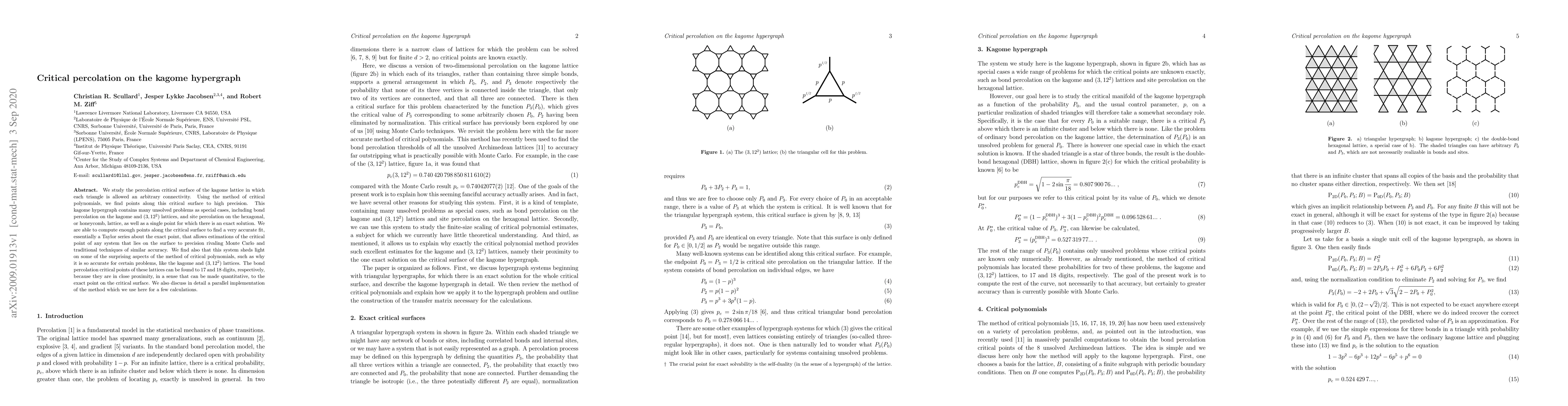 Researchers used critical polynomials to study percolation on a kagome hypergraph, finding a precise fit for its critical surface that rivals Monte Carlo simulations and offers insights into the method's accuracy.