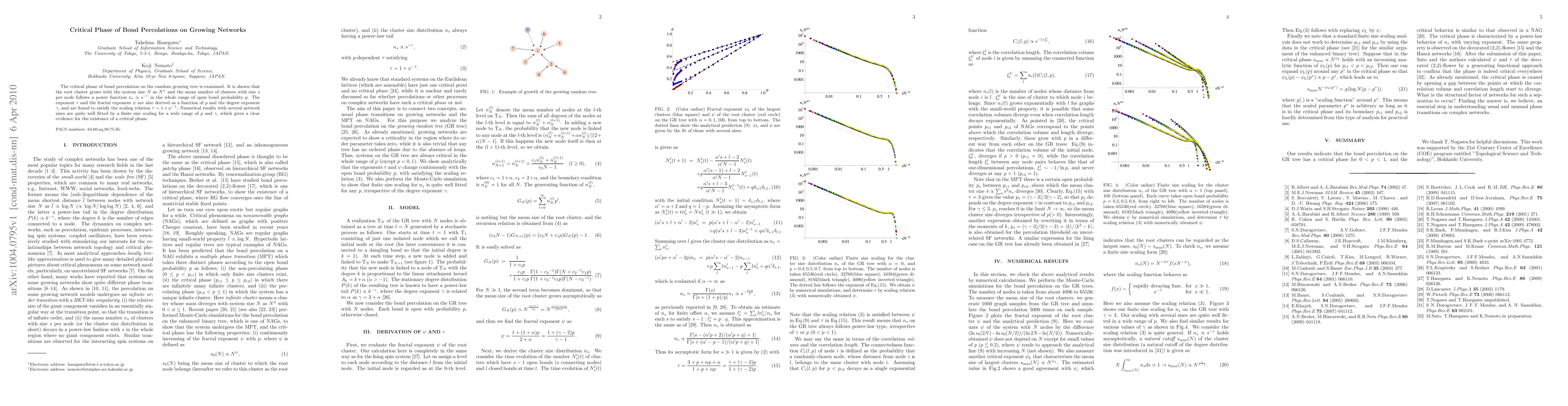 The critical phase of bond percolation on the random growing tree is examined. It is shown that the root cluster grows with the system size $N$ as $N^\psi$ and the mean number of clusters with size $s$ per node follows a power function $n_s \propto s^{-\tau}$ in the whole range of open bond probability $p$. The exponent $\tau$ and the fractal exponent $\psi$ are also derived as a function of $p$ and the degree exponent $\gamma$, and are found to satisfy the scaling relation $\tau=1+\psi^{-1}$. Numerical results with several network sizes are quite well fitted by a finite size scaling for a wide range of $p$ and $\gamma$, which gives a clear evidence for the existence of a critical phase.