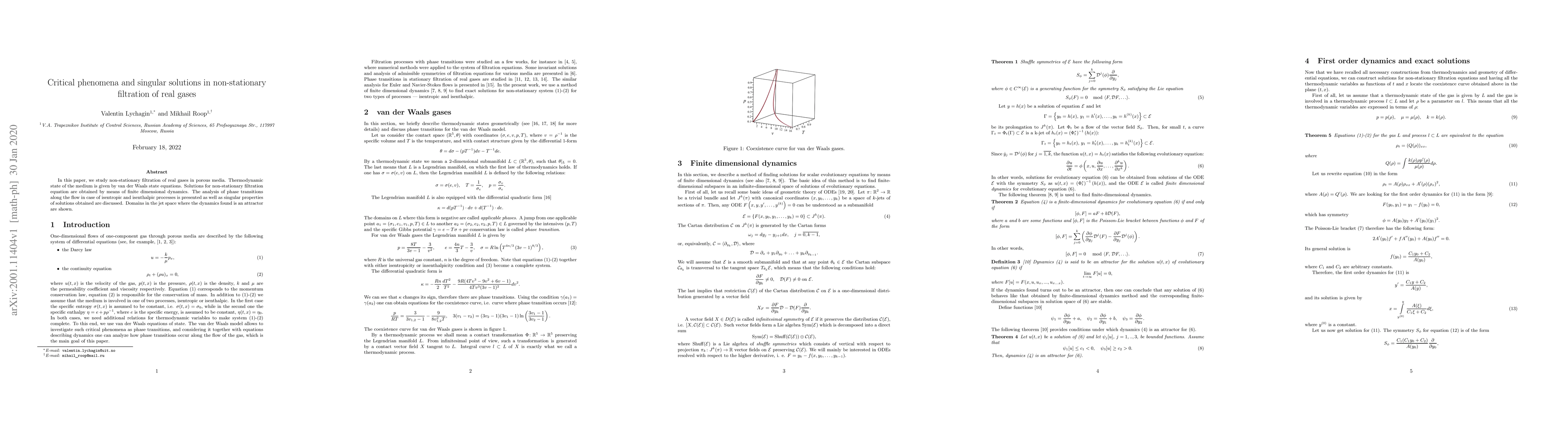 This paper investigates the non-stationary filtration of real gases in porous media, employing the van der Waals equations to describe the thermodynamic state. It derives solutions via finite dimensional dynamics and analyzes phase transitions and singular properties, identifying domains where the dynamics act as attractors.