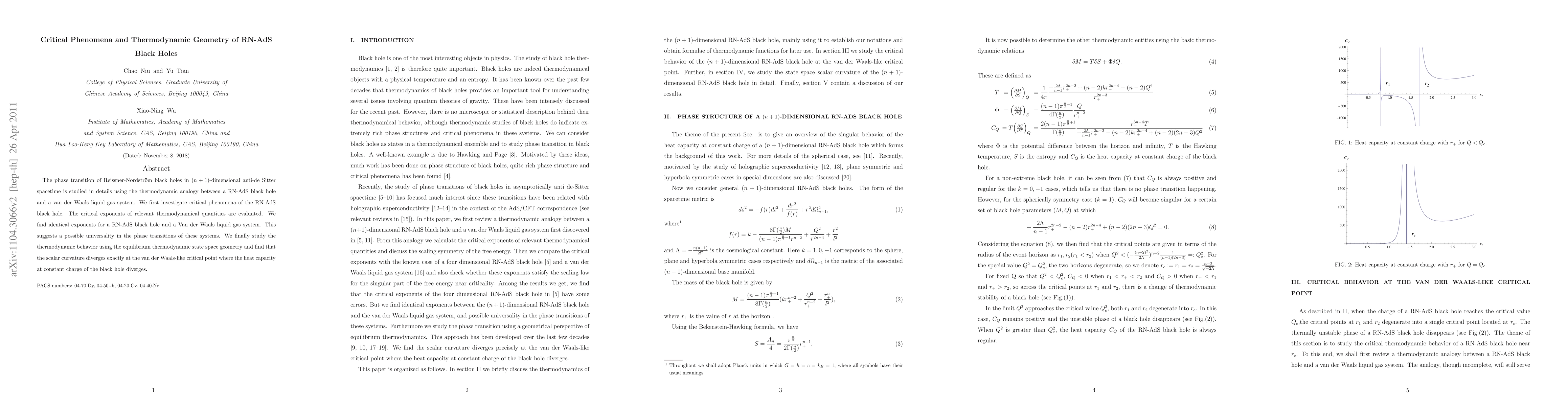 The phase transition of Reissner-Nordstr\"om black holes in $(n+1)$-dimensional anti-de Sitter spacetime is studied in details using the thermodynamic analogy between a RN-AdS black hole and a van der Waals liquid gas system. We first investigate critical phenomena of the RN-AdS black hole. The critical exponents of relevant thermodynamical quantities are evaluated. We find identical exponents for a RN-AdS black hole and a Van der Waals liquid gas system. This suggests a possible universality in the phase transitions of these systems. We finally study the thermodynamic behavior using the equilibrium thermodynamic state space geometry and find that the scalar curvature diverges exactly at the van der Waals-like critical point where the heat capacity at constant charge of the black hole diverges.