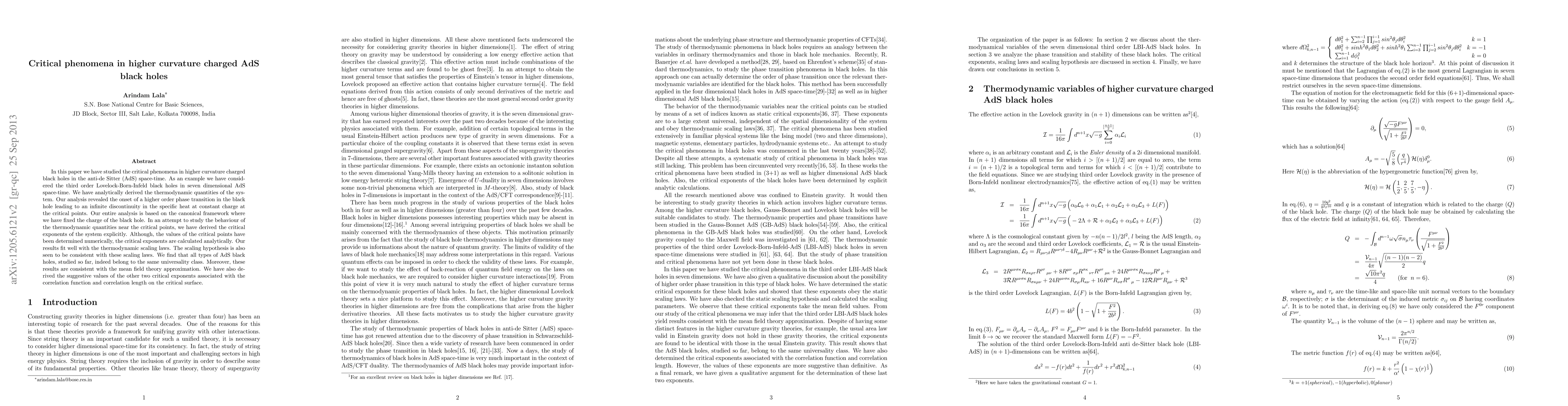 This paper investigates the critical phenomena in higher curvature charged black holes within anti-de Sitter (AdS) space-time, specifically focusing on third-order Lovelock-Born-Infeld black holes. The study reveals a higher-order phase transition with infinite discontinuity in specific heat at constant charge, and analytically derives the critical exponents, fitting well with thermodynamic scaling laws and mean field theory.