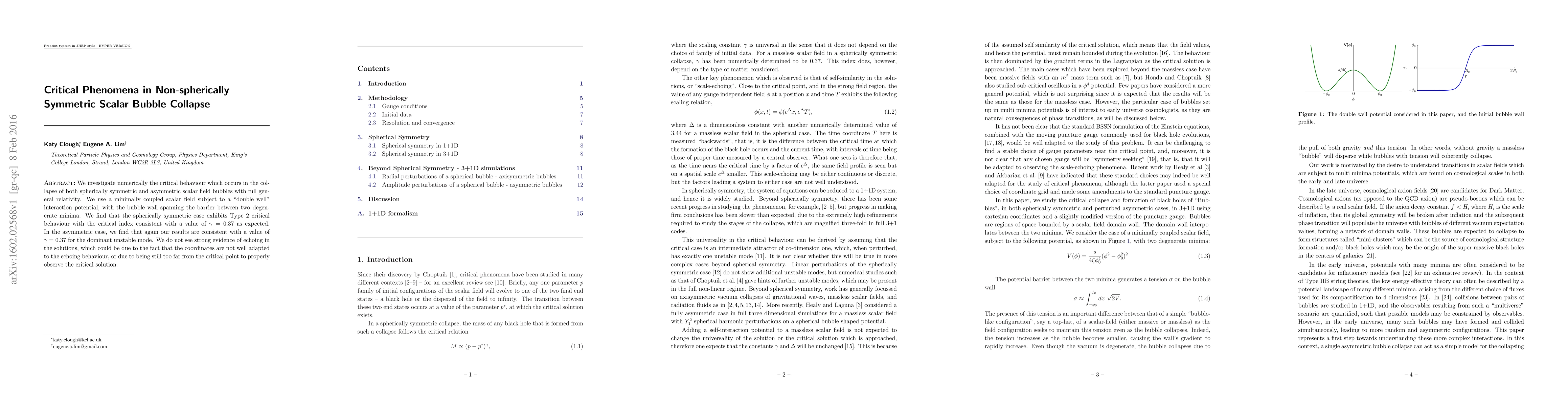 This paper numerically examines the critical phenomena in the collapse of scalar field bubbles, both spherically symmetric and asymmetric, under general relativity. It finds that the critical index gamma is consistently 0.37 for both cases, but lacks strong evidence of echoing, possibly due to inadequate coordinate adaptation or insufficient proximity to the critical point.