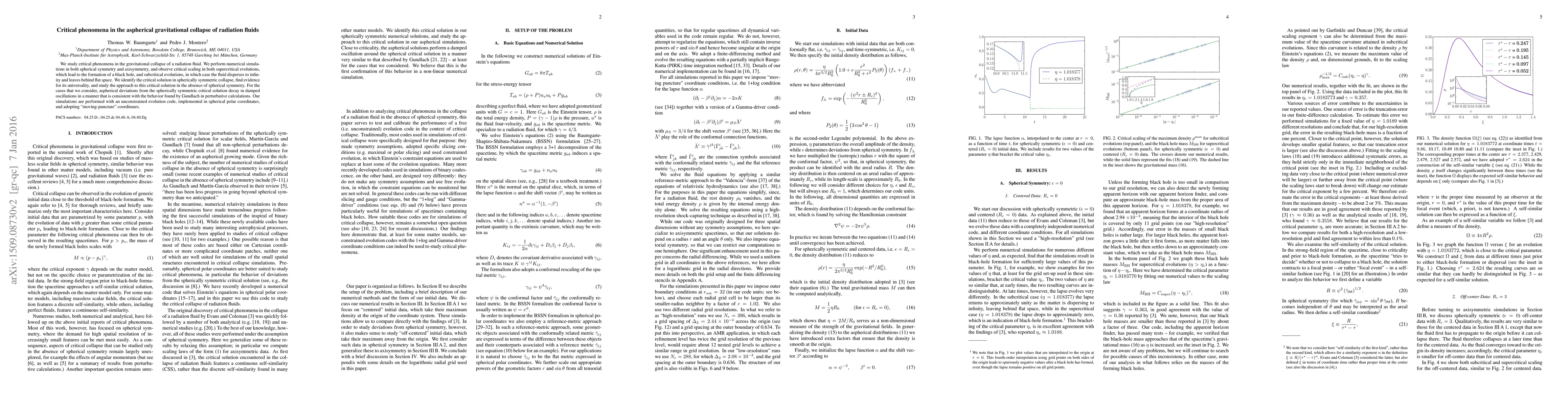 This paper investigates critical phenomena during the gravitational collapse of radiation fluids, finding critical scaling in both black hole formation and dispersal scenarios. The study identifies a universal critical solution in spherical collapse and observes damped oscillatory decay in aspherical deviations, consistent with prior perturbative calculations.