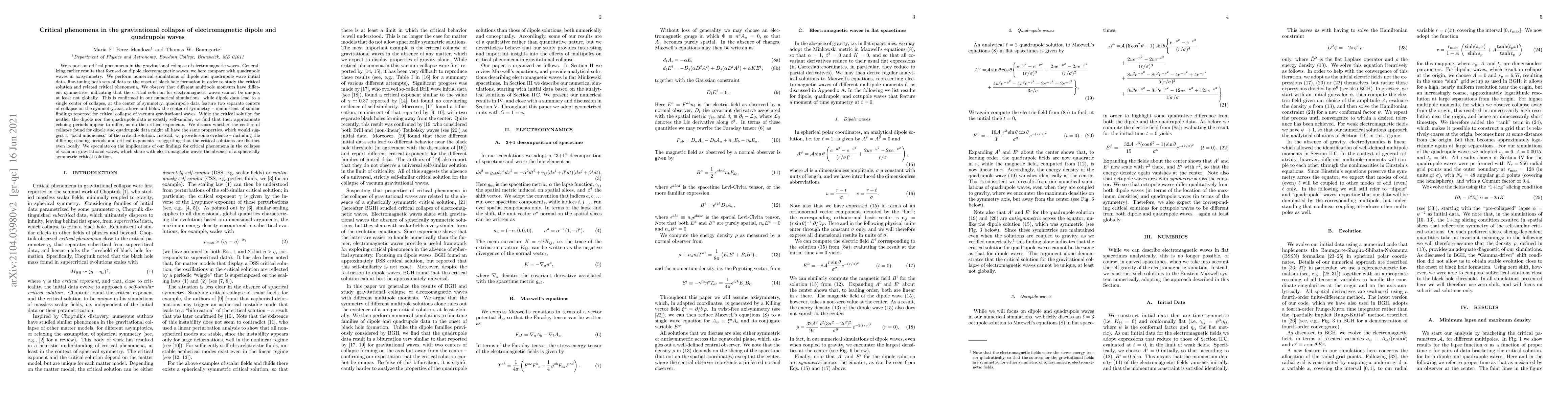 This paper explores the critical phenomena in the gravitational collapse of electromagnetic dipole and quadrupole waves, revealing that different multipole moments lead to different symmetries and collapse centers. The study finds that while dipole data results in a single center of collapse, quadrupole data features two separate centers, suggesting distinct critical solutions even locally.