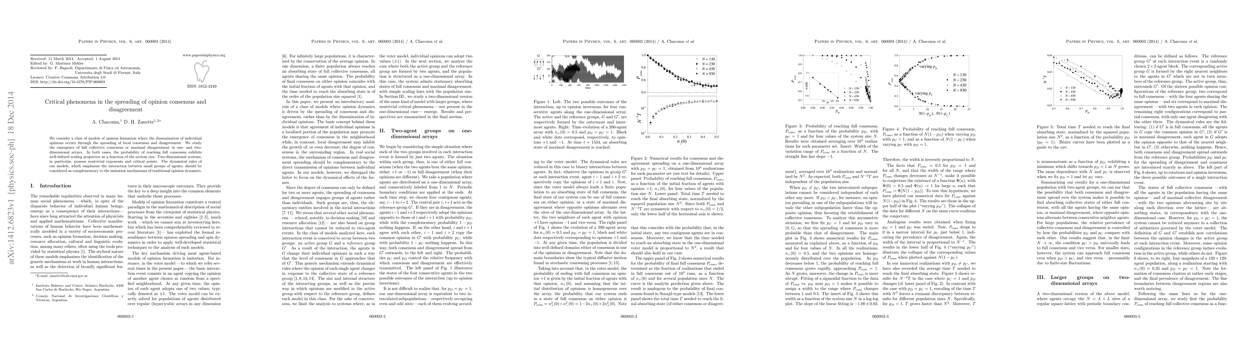 This paper investigates models of opinion formation focusing on consensus and disagreement spread through local interactions. It reveals scaling properties and critical phenomena in the emergence of collective consensus or maximal disagreement, with two-dimensional systems exhibiting nontrivial exponents and critical points.