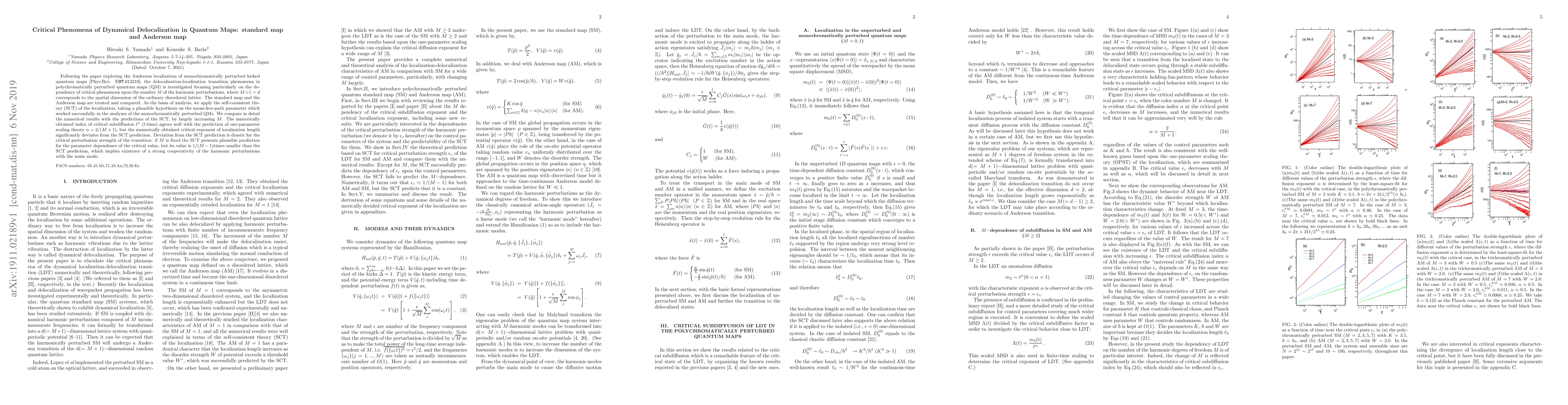This paper investigates the delocalization-localization transition in polychromatically perturbed quantum maps, focusing on the critical phenomena's dependency on the number of harmonic perturbations. The study compares the standard map and the Anderson map using self-consistent theory, finding good agreement with one-parameter scaling theory for the index of critical subdiffusion but significant deviations in the critical exponent and critical perturbation strength predictions.