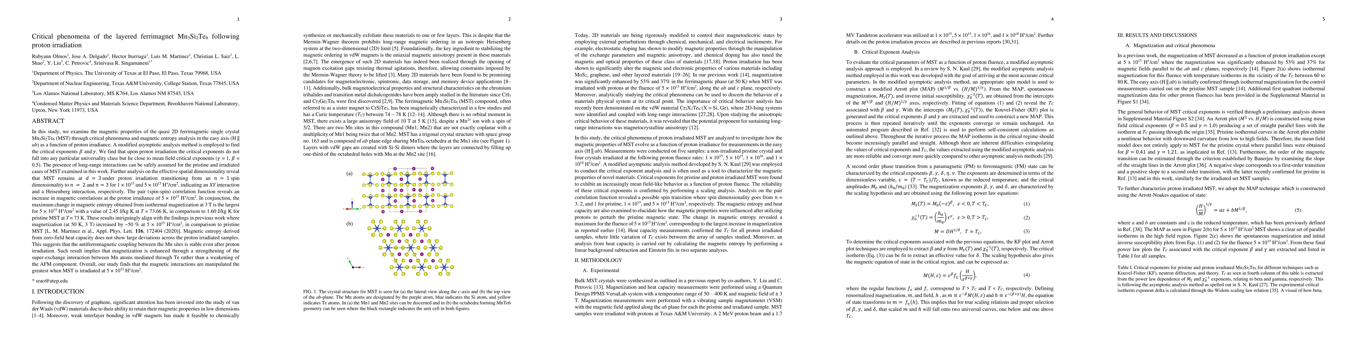 Proton irradiation of Mn3Si2Te6 alters its magnetic properties, enhancing magnetization through strengthened super-exchange interactions between Mn atoms, without significantly affecting antiferromagnetic coupling or universality class.