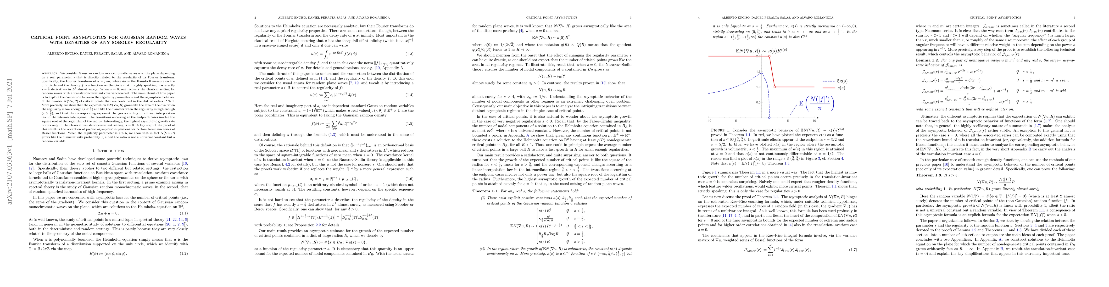 Research on Gaussian random waves reveals that as their regularity parameter increases, the number of critical points in a disk grows like the diameter with probability 1, while at lower regularity, it grows like the area, showing unique asymptotic behavior depending on the parameter value.
