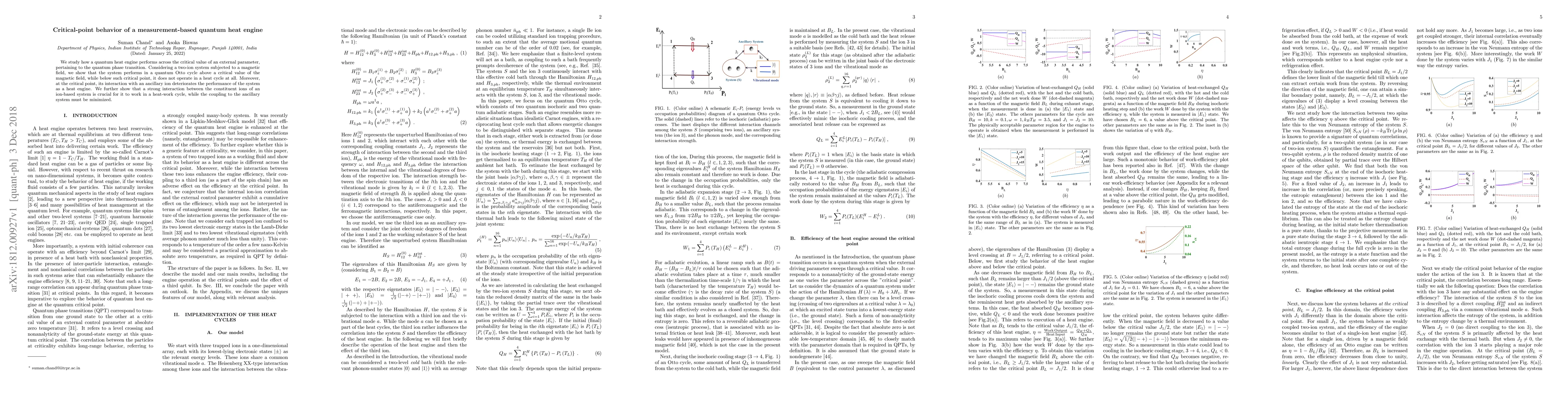 This paper investigates the critical-point behavior of a quantum heat engine in a two-ion system undergoing a quantum phase transition. It finds that the engine operates in a quantum Otto cycle above the critical magnetic field but ceases to function below it, and at the critical point, interaction with an ancillary ion degrades its performance.