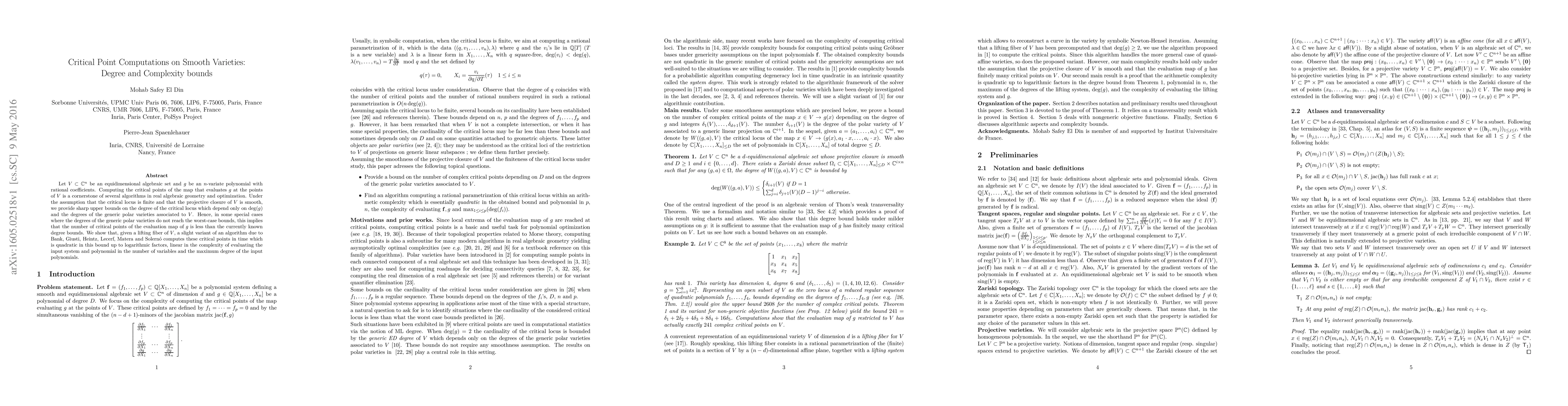 Let V $\subset$ C n be an equidimensional algebraic set and g be an n-variate polynomial with rational coefficients. Computing the critical points of the map that evaluates g at the points of V is a cornerstone of several algorithms in real algebraic geometry and optimization. Under the assumption that the critical locus is finite and that the projective closure of V is smooth, we provide sharp upper bounds on the degree of the critical locus which depend only on deg(g) and the degrees of the generic polar varieties associated to V. Hence, in some special cases where the degrees of the generic polar varieties do not reach the worst-case bounds, this implies that the number of critical points of the evaluation map of g is less than the currently known degree bounds. We show that, given a lifting fiber of V , a slight variant of an algorithm due to Bank, Giusti, Heintz, Lecerf, Matera and Solern{\'o} computes these critical points in time which is quadratic in this bound up to logarithmic factors, linear in the complexity of evaluating the input system and polynomial in the number of variables and the maximum degree of the input polynomials.