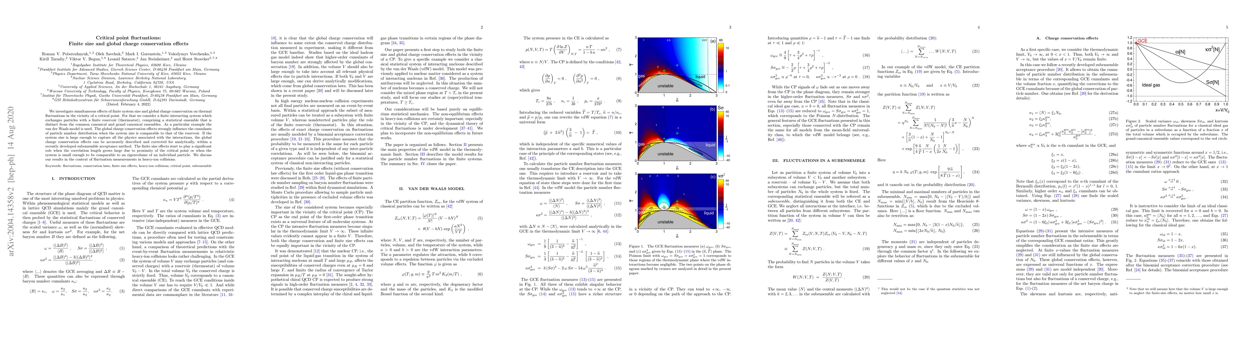 We investigate simultaneous effects of finite system size and global charge conservation on thermal fluctuations in the vicinity of a critical point. For that we consider a finite interacting system which exchanges particles with a finite reservoir (thermostat), comprising a statistical ensemble that is distinct from the common canonical and grand canonical ensembles. As a particular example the van der Waals model is used. The global charge conservation effects strongly influence the cumulants of particle number distribution when the system size is comparable to that of the reservoir. If the system size is large enough to capture all the physics associated with the interactions, the global charge conservation effects can be accurately described and corrected for analytically, within a recently developed subensemble acceptance method. The finite size effects start to play a significant role when the correlation length grows large due to proximity of the critical point or when the system is small enough to be comparable to an eigenvolume of an individual particle. We discuss our results in the context of fluctuation measurements in heavy-ion collisions.