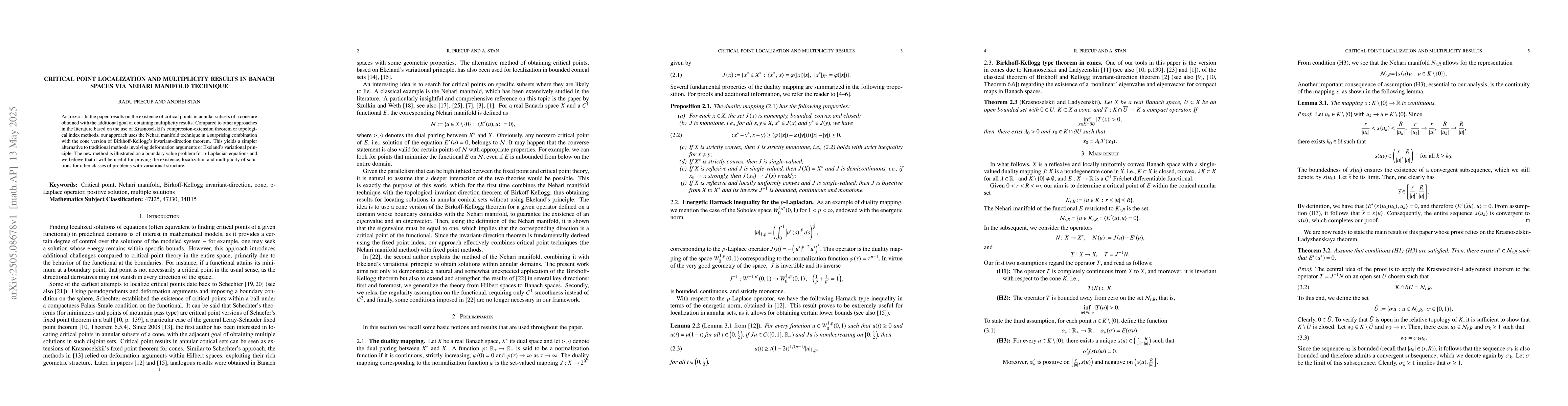 The innovative combination of Nehari manifold technique with Birkhoff-Kellogg's invariant-direction theorem provides a streamlined approach for proving critical point existence and multiplicity in Banach spaces.